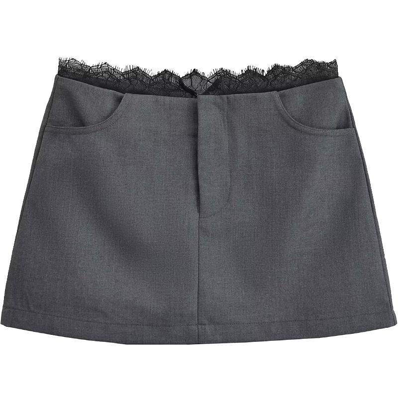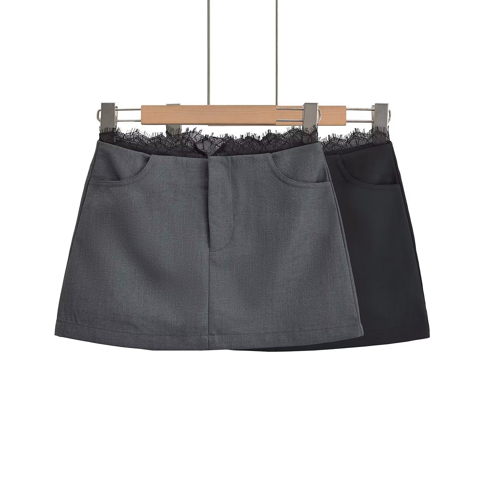 美式复古纯欲蕾丝花边高级灰低腰西装半身裙防走光夏季a字短裙女