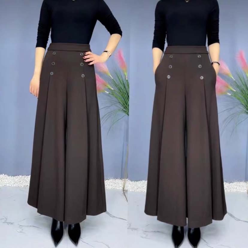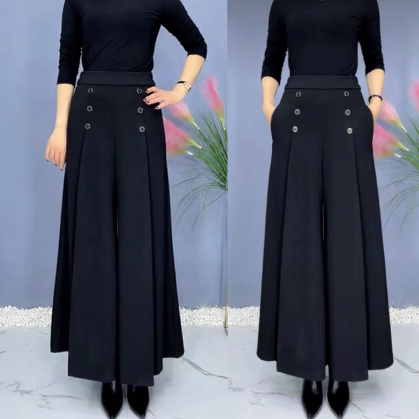女士秋冬季牛奶丝裙裤妈妈款阔腿裤大码弹力宽松中老年甩裤洋气