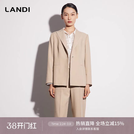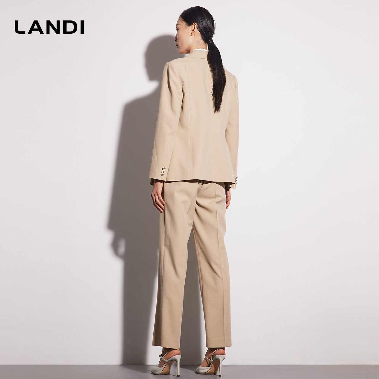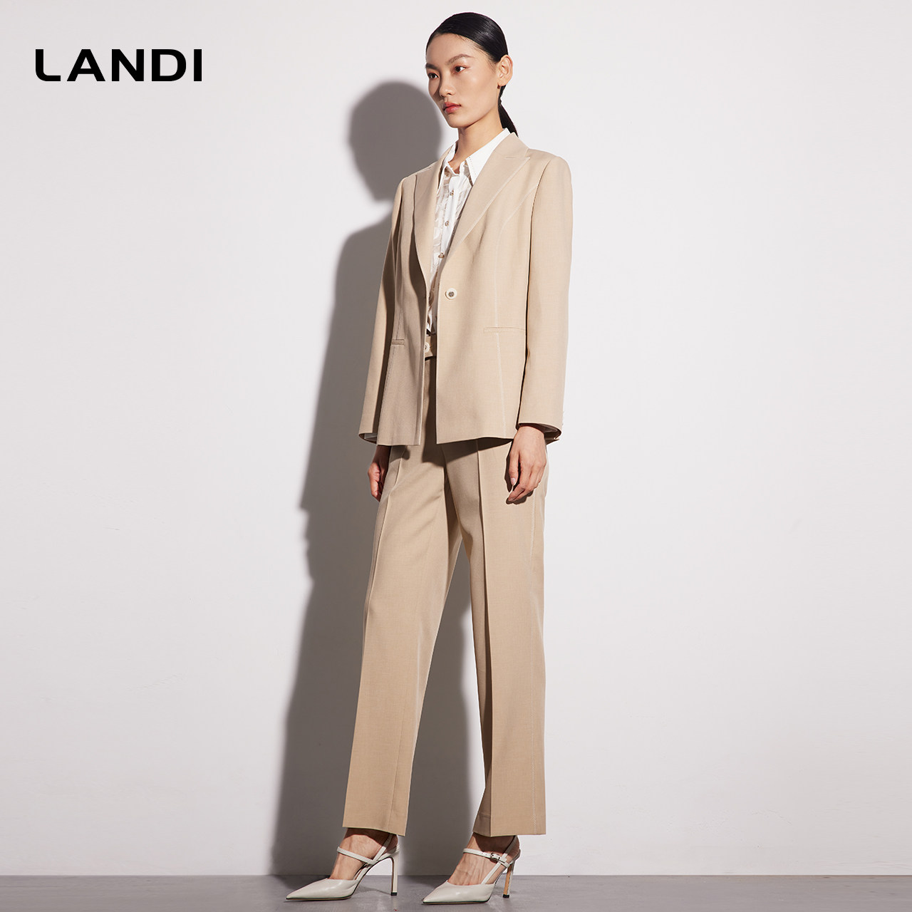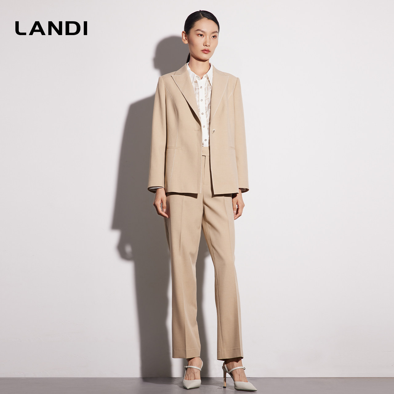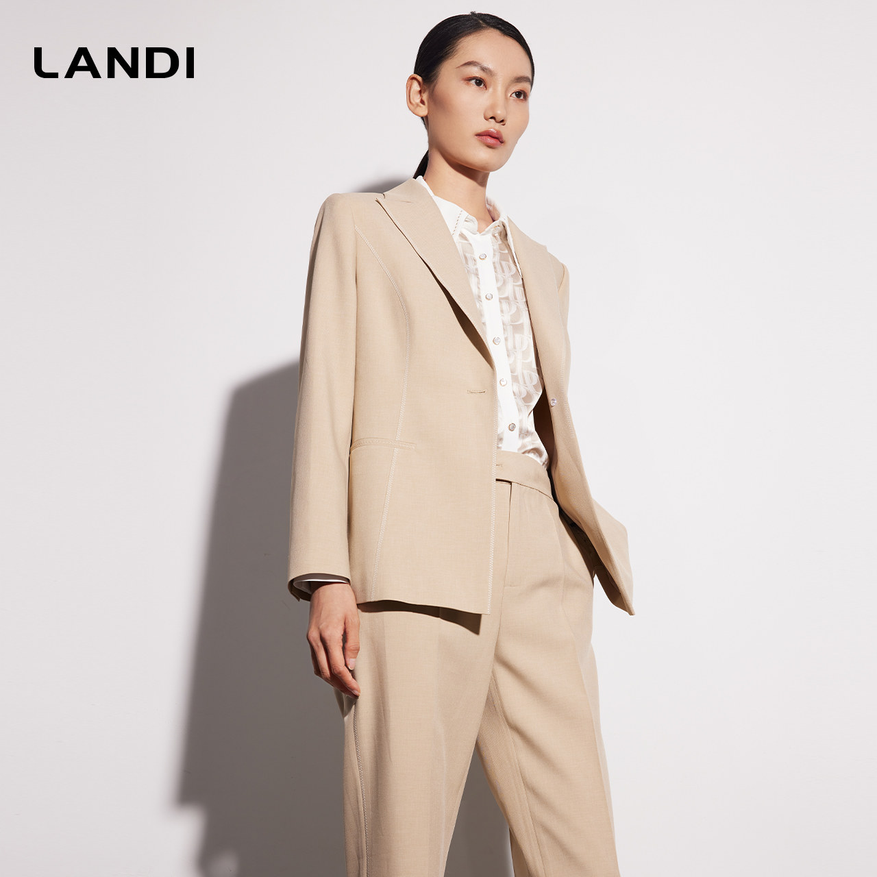 LANDI职场精英系列麦冬茶色简约手工拱针收腰西装外套女春新品