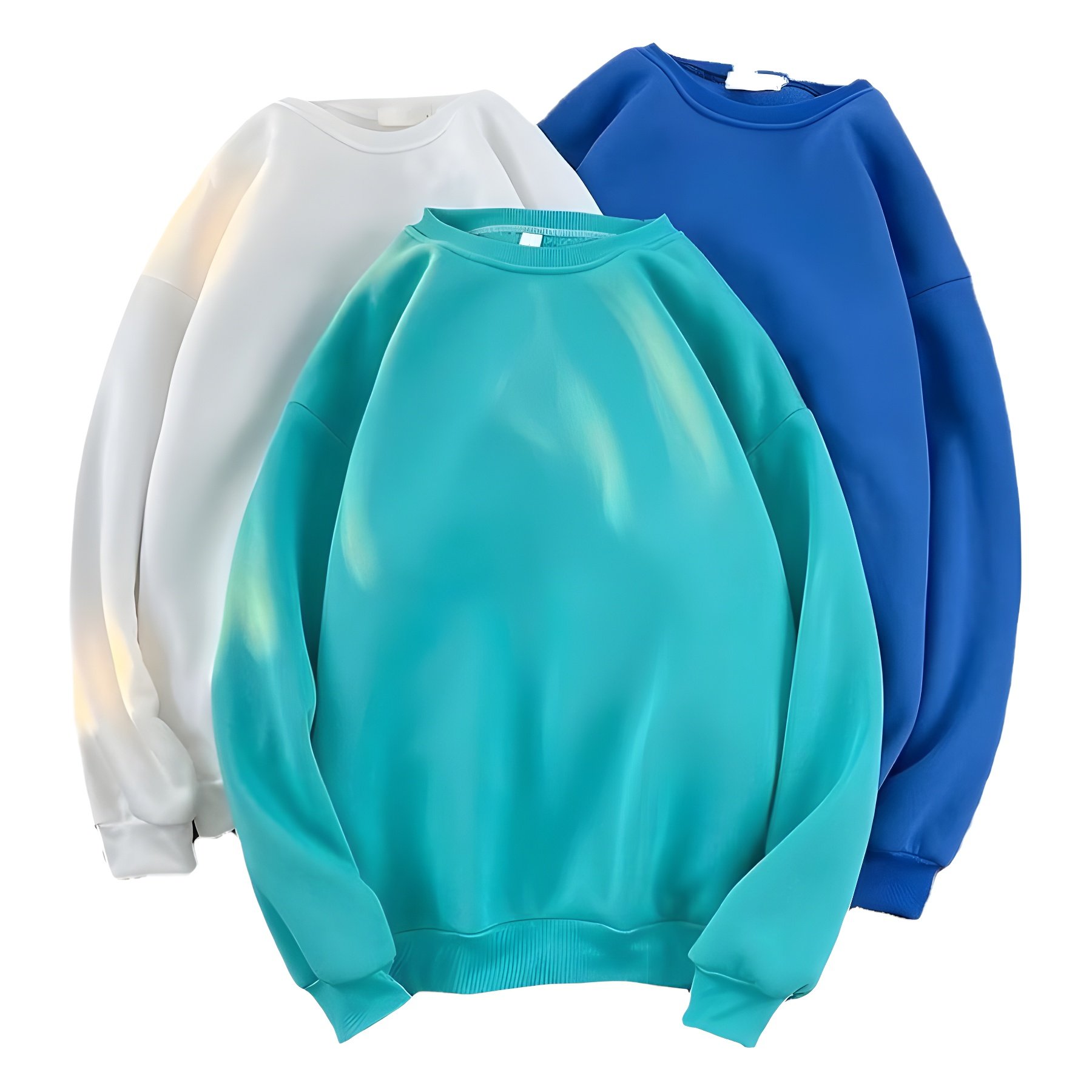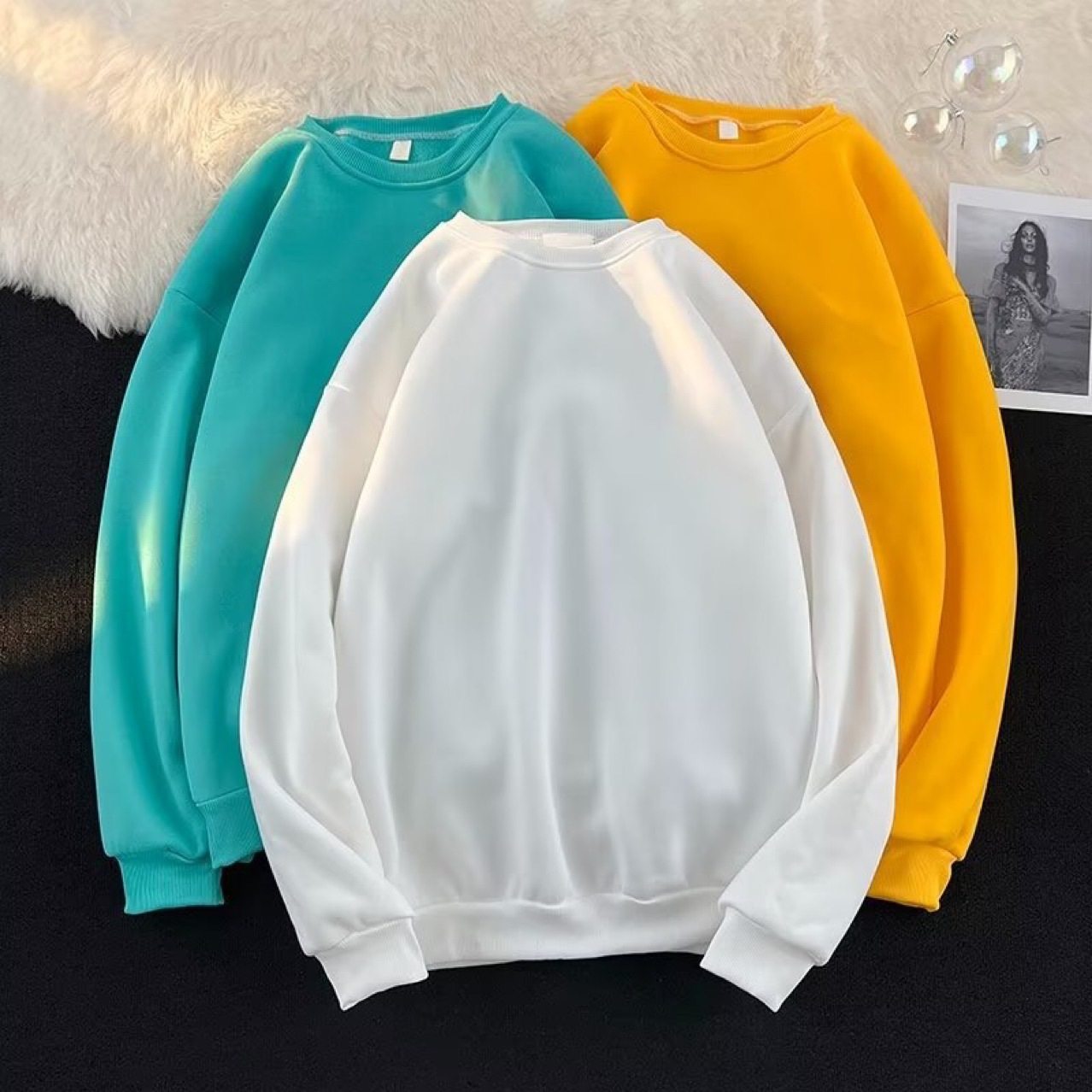 秋冬季青少年圆领加绒保暖简约纯色潮流百搭休闲套头情侣款卫衣