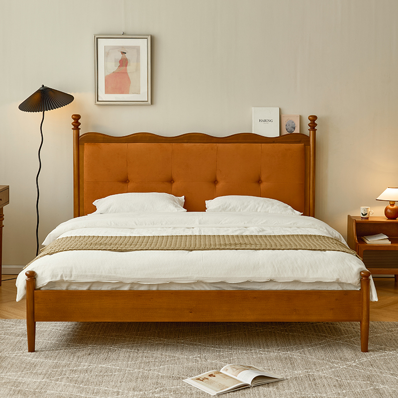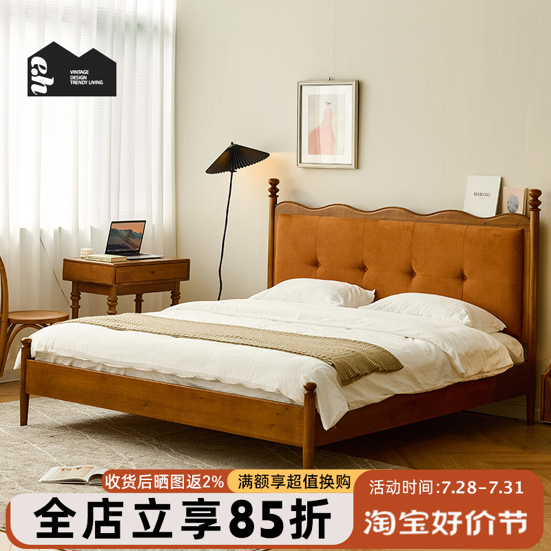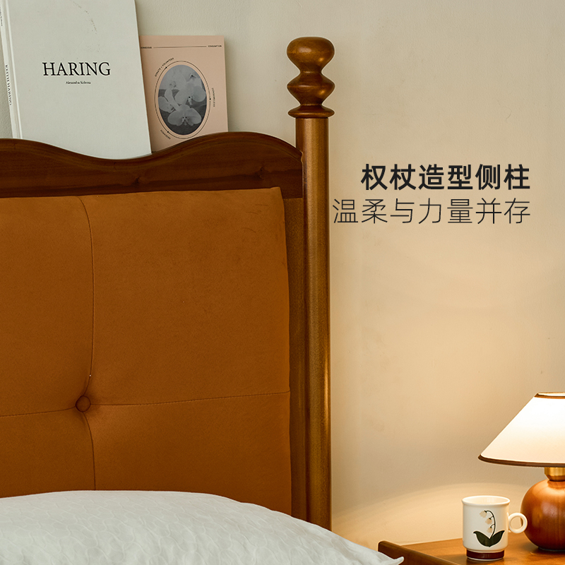 欧式复古实木软包床小户型现代简约法式卧室双人床主卧架子床1.8m