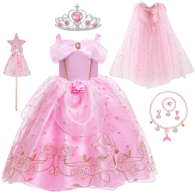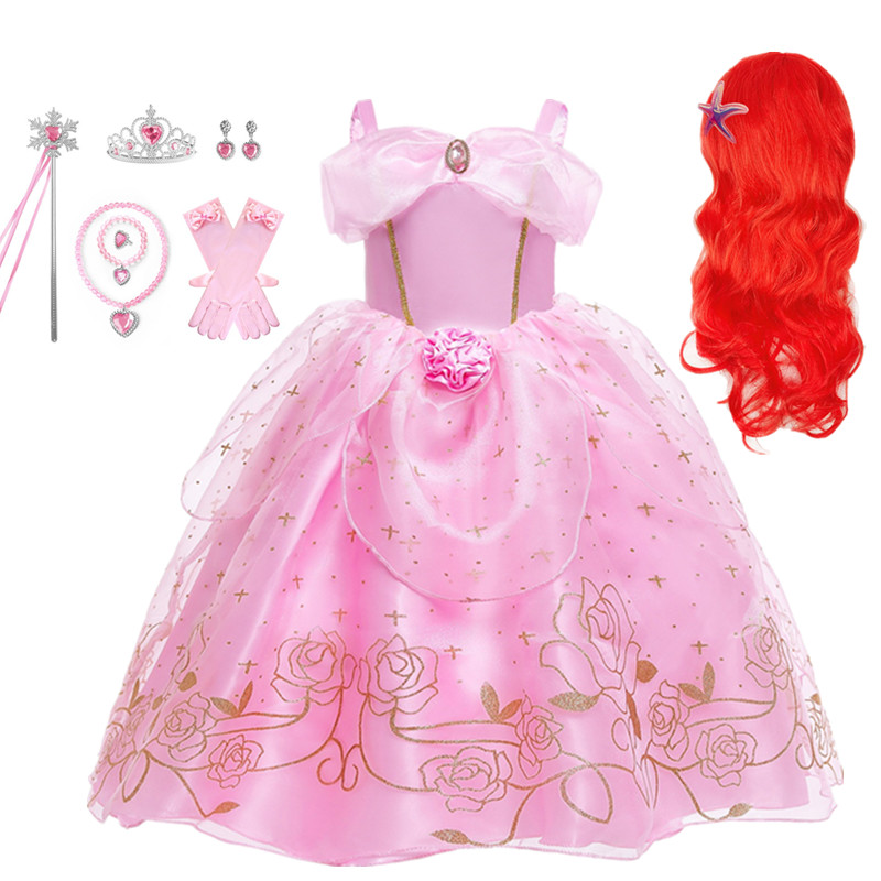 爱丽儿美人鱼连衣裙女童粉色在逃公主裙礼服儿童万圣节蓬蓬演出服
