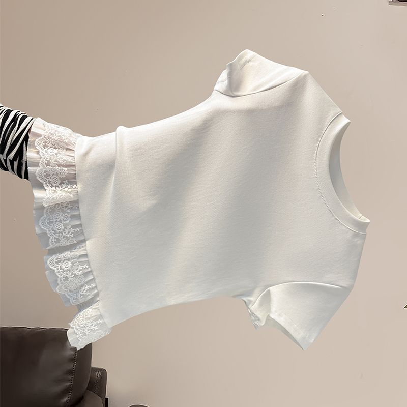 儿童t恤短袖女童夏装2025新款夏季纯棉拼接蕾丝花边短款上衣潮