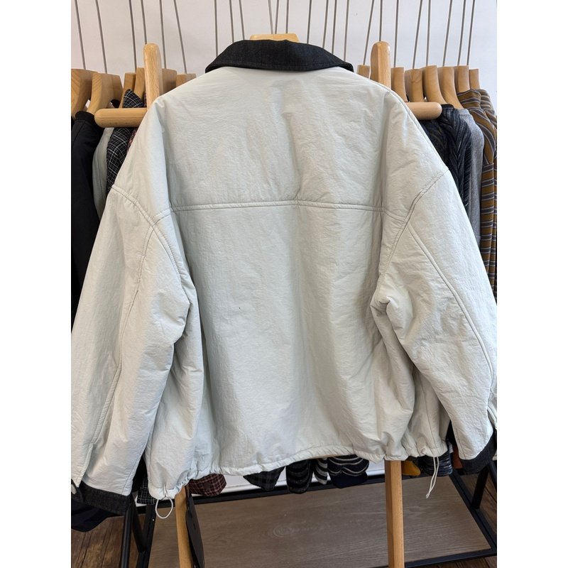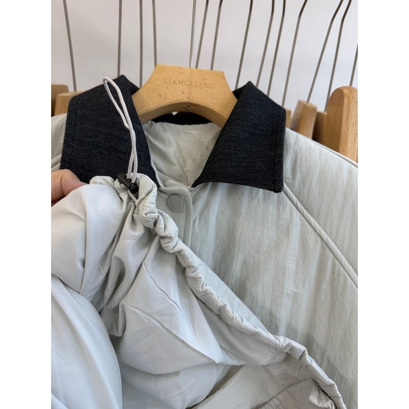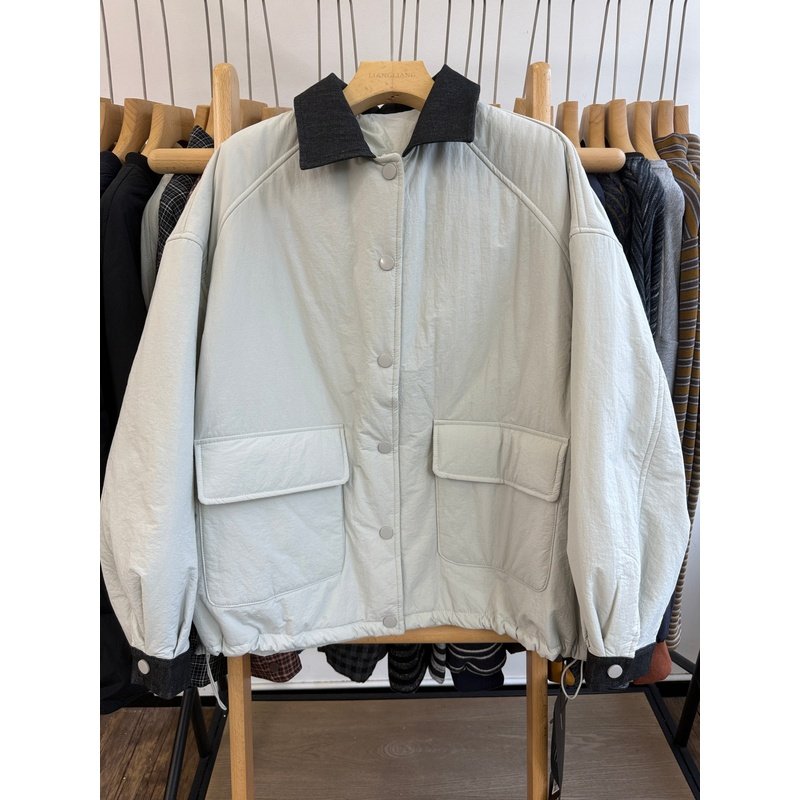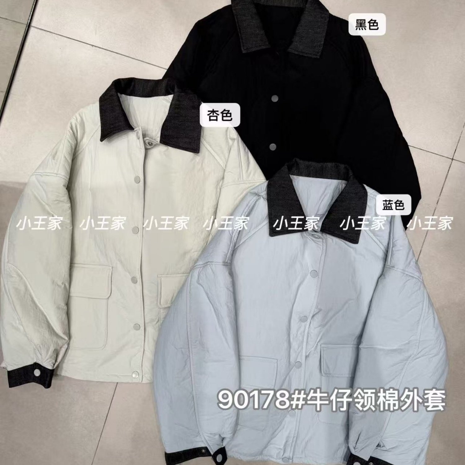 小王家90178冬装大码胖mm韩版宽松慵懒休闲风牛仔领撞色棉服外套