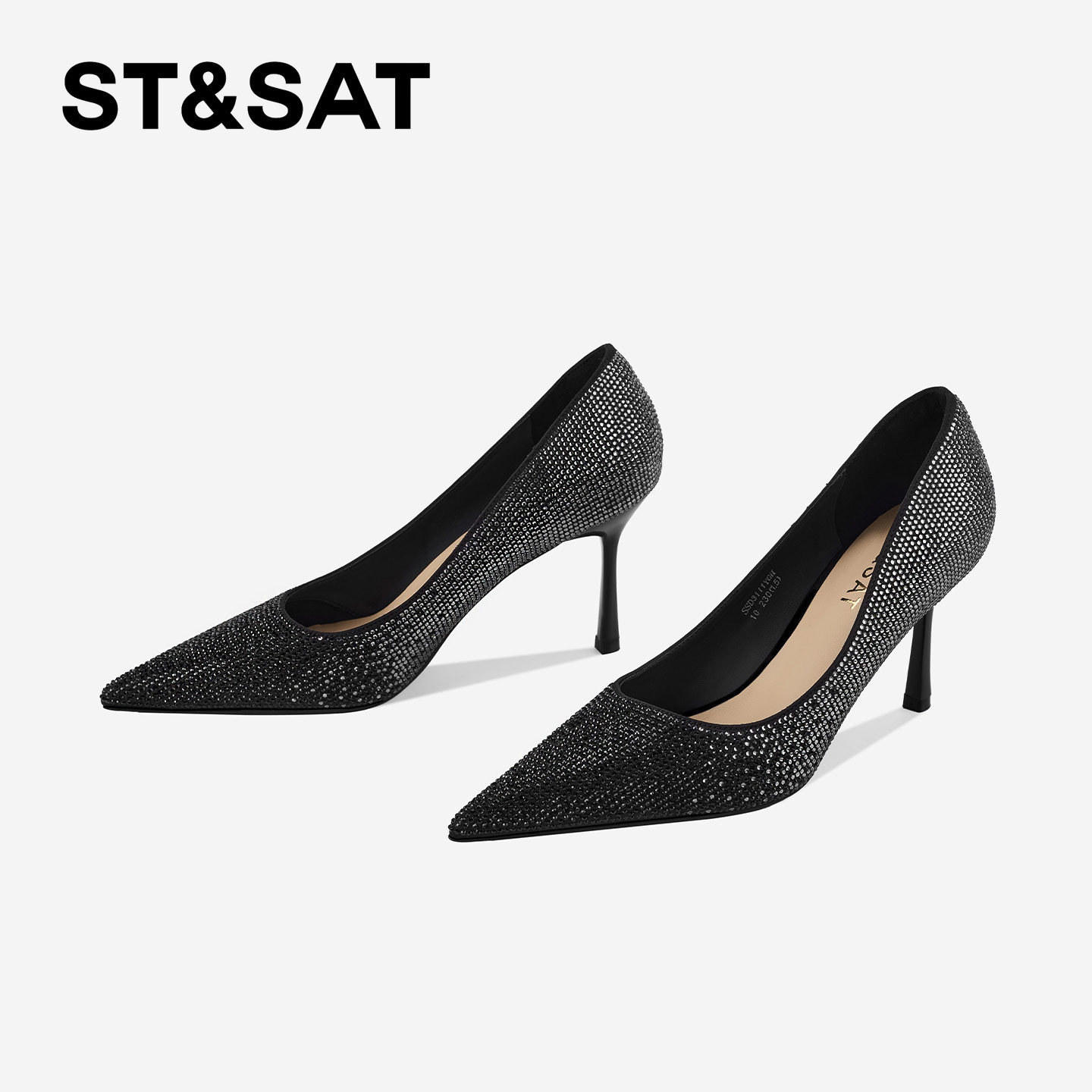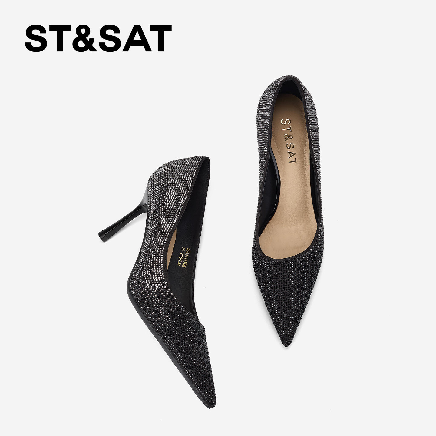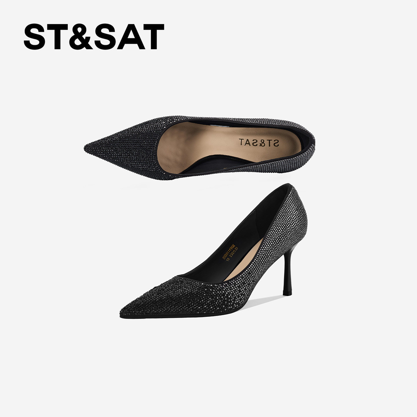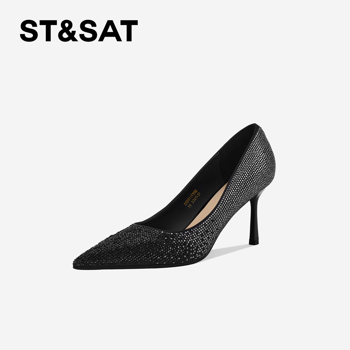 St&Sat/星期六水钻尖头浅口单鞋细跟高跟鞋优雅气质百搭法式女鞋