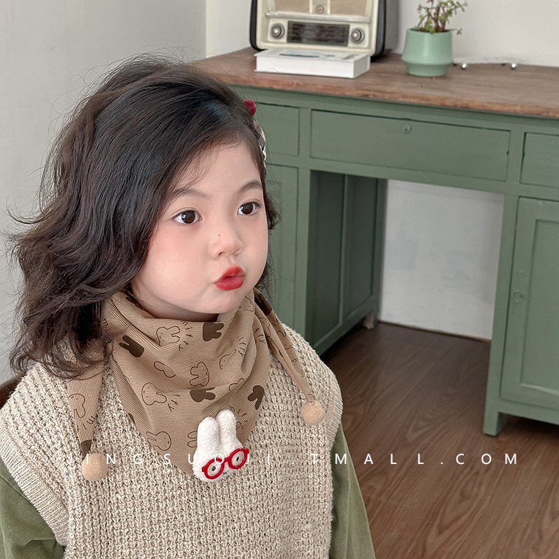 儿童围巾秋冬季保暖三角巾男婴儿女宝宝出游防风可爱小兔子棉围脖
