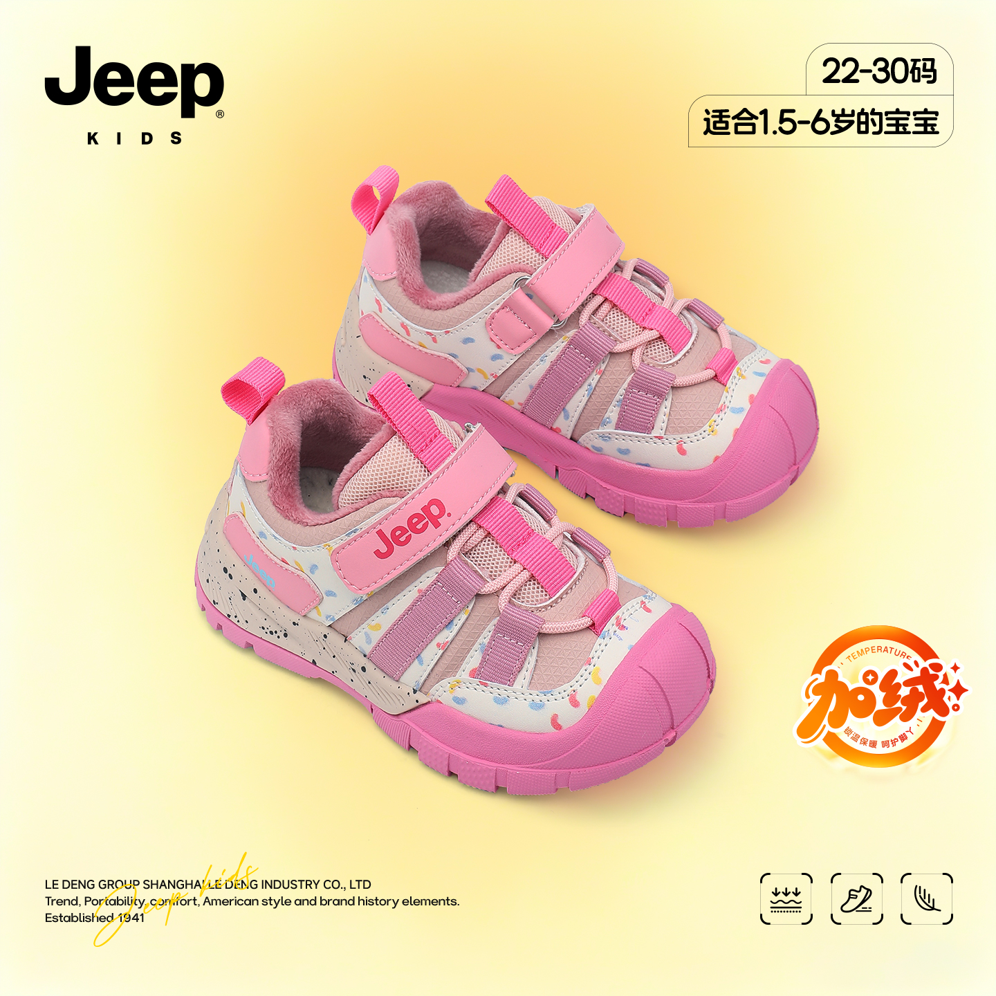 jeep女宝宝棉鞋秋冬季小童儿童加绒鞋子软底防滑保暖鞋男童二棉鞋