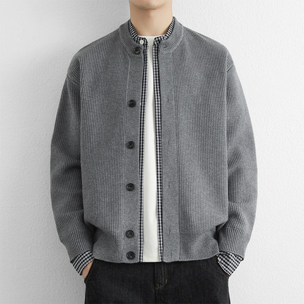 秋冬装圆领毛衣男士开衫2025新款青年高级感品质上衣帅气外套潮流