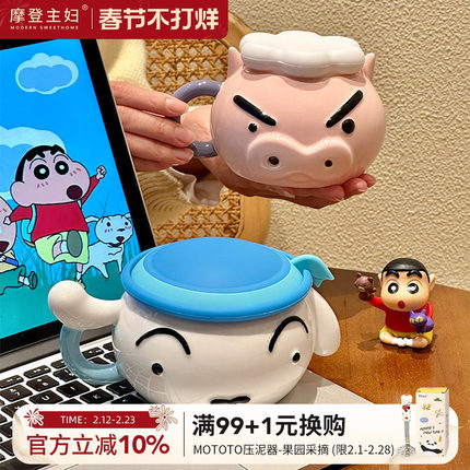 【摩登主妇&蜡笔小新】左卫门马克杯家用水杯女生日礼物陶瓷杯子