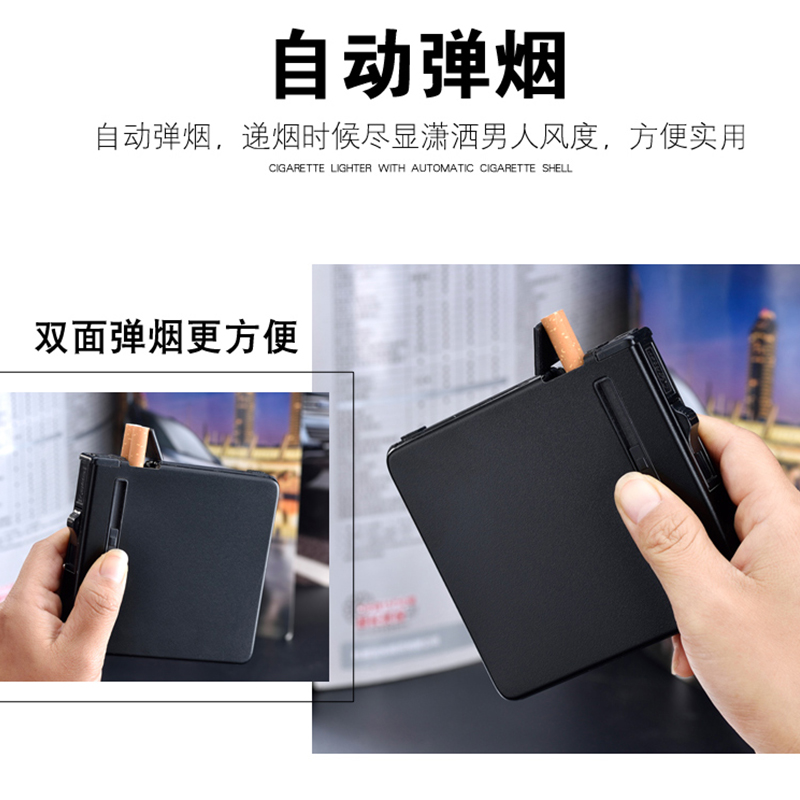 金属烟盒20支装自动弹烟带充电打火机创意个性超薄便携香菸盒男士
