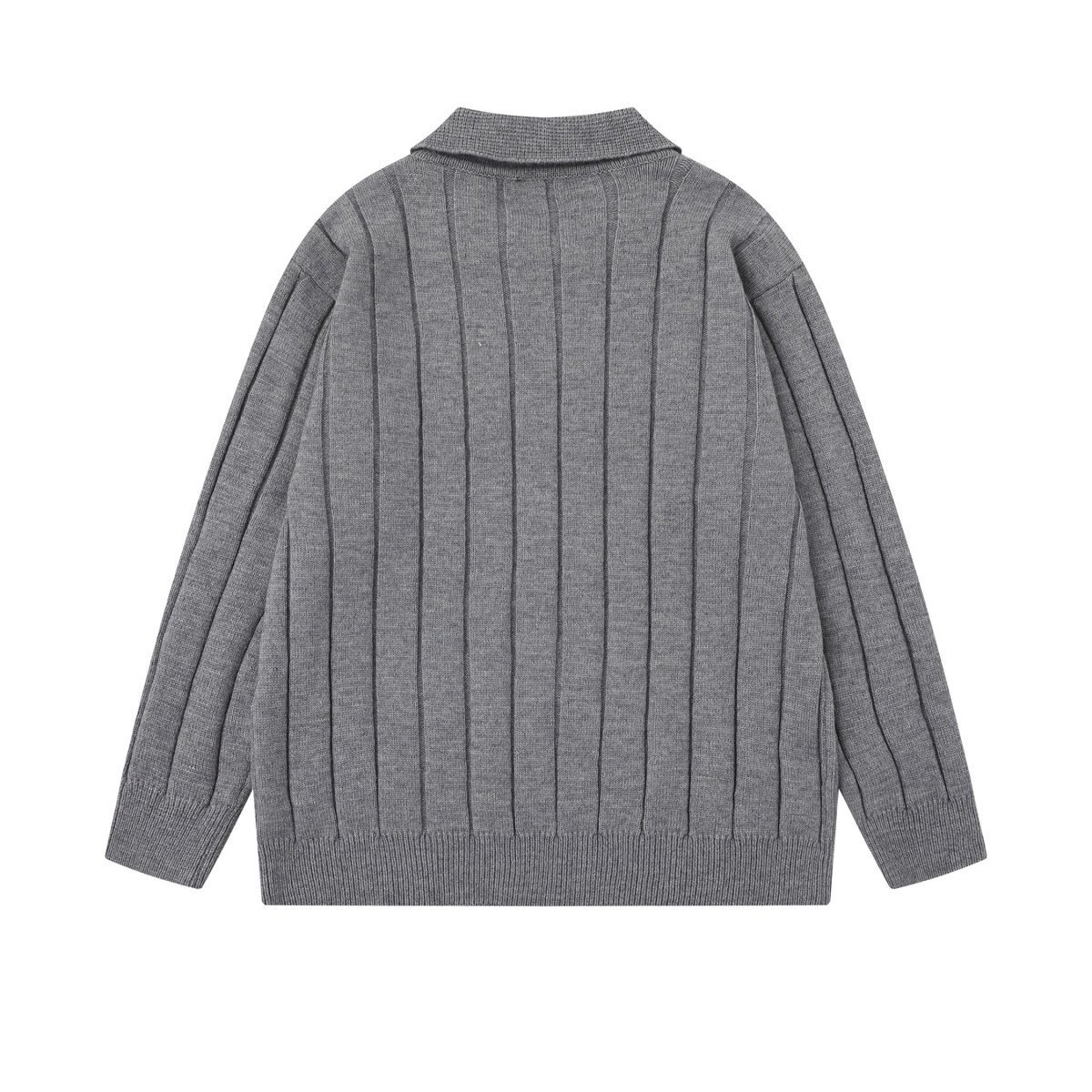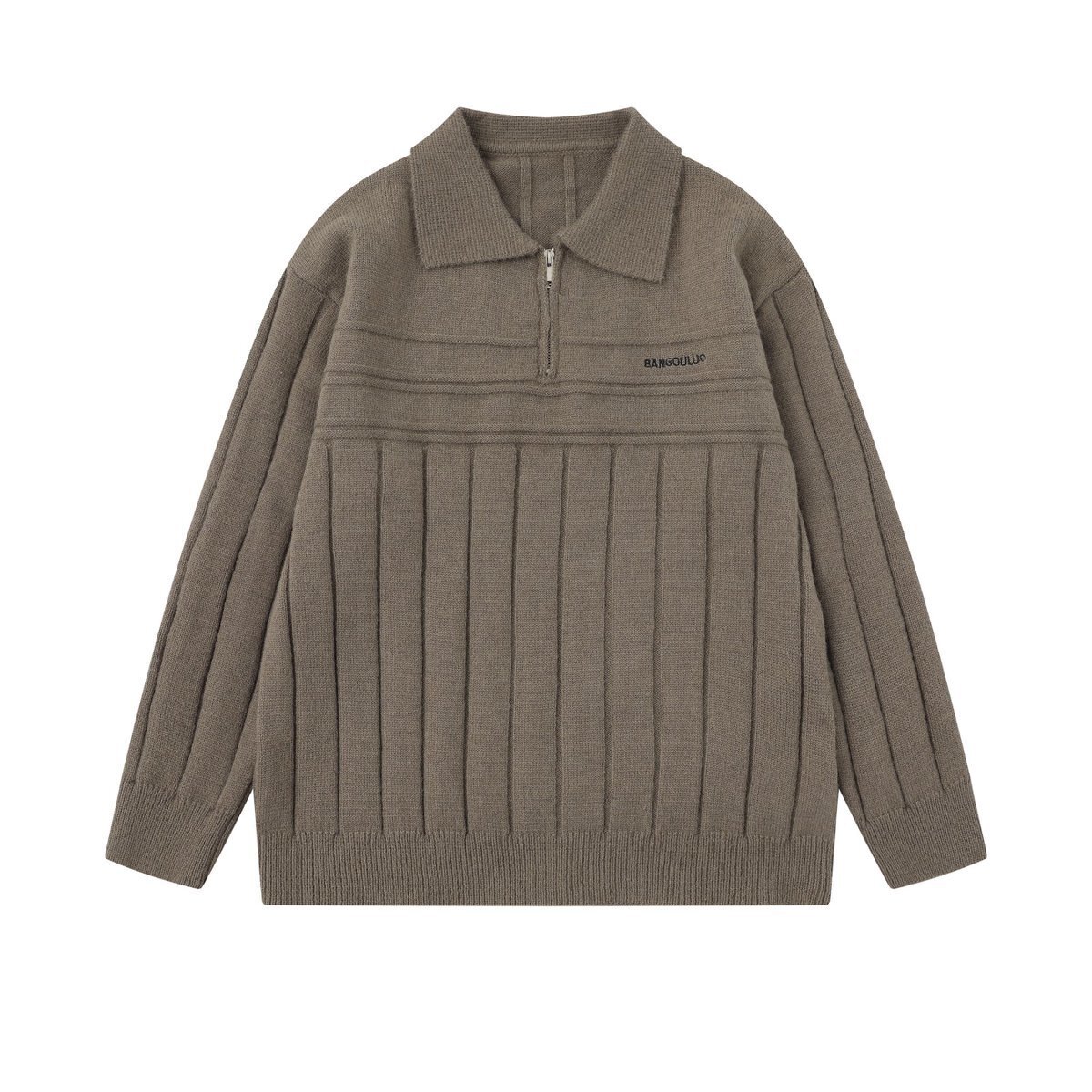 邦欧罗美式复古字母刺绣翻领毛衣男女半拉链POLO衫情侣套头针织衫