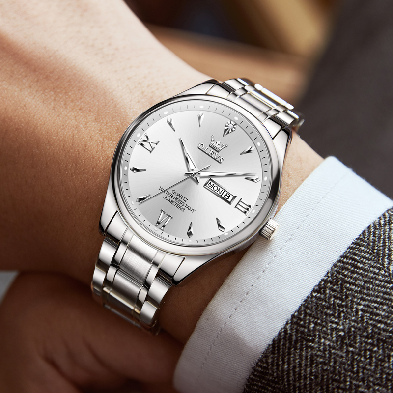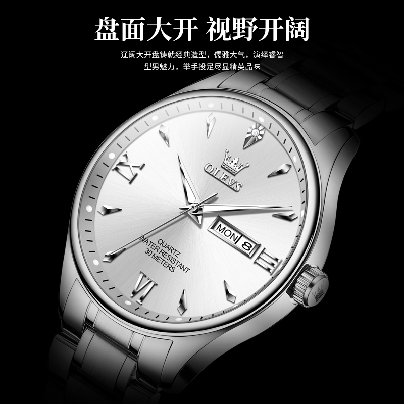 正品牌机械表多功能男士手表男款气质百搭商务防水钢带石英表名表