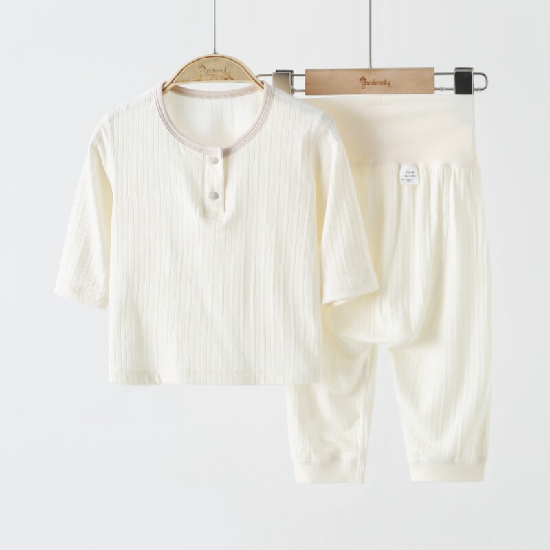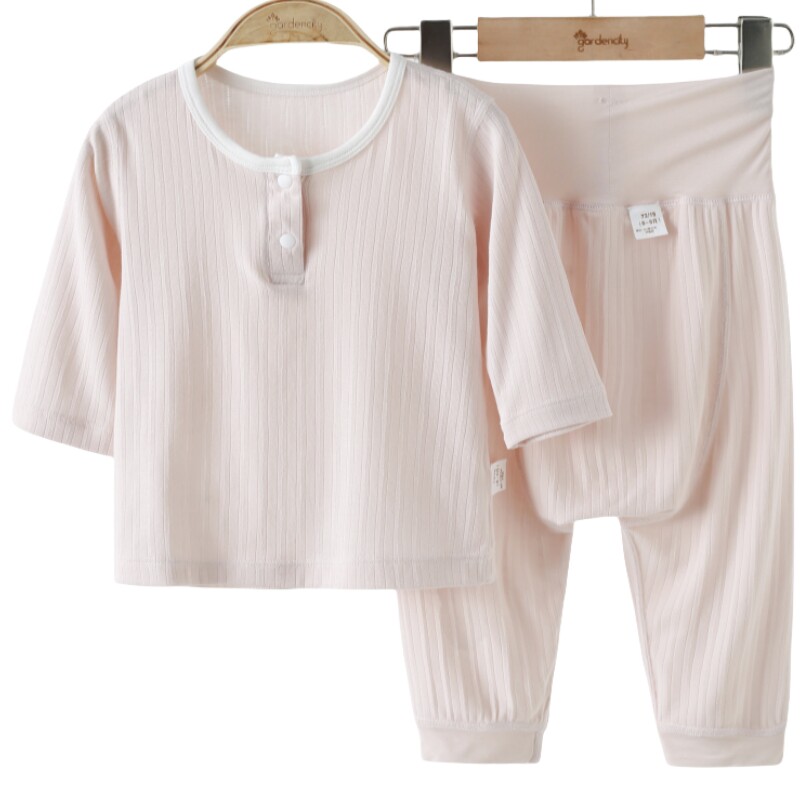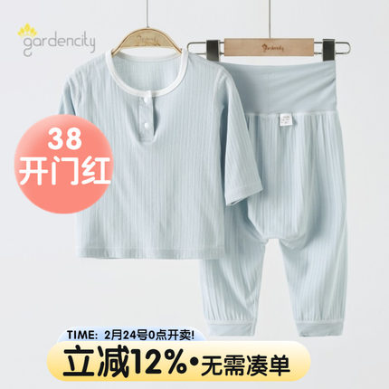 婴儿家居服套装夏季薄款莫代尔提花男女宝宝9分袖上衣高腰大PP裤