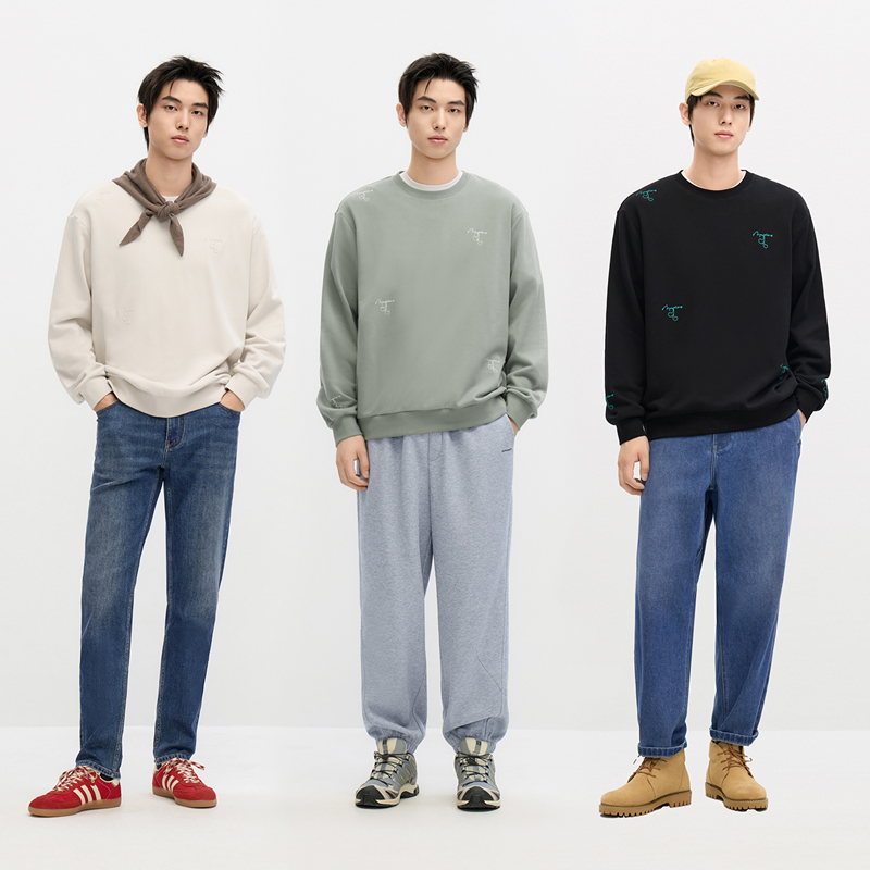 GXG男装2024年品秋季简约休闲刺绣宽松卫衣圆领卫衣男