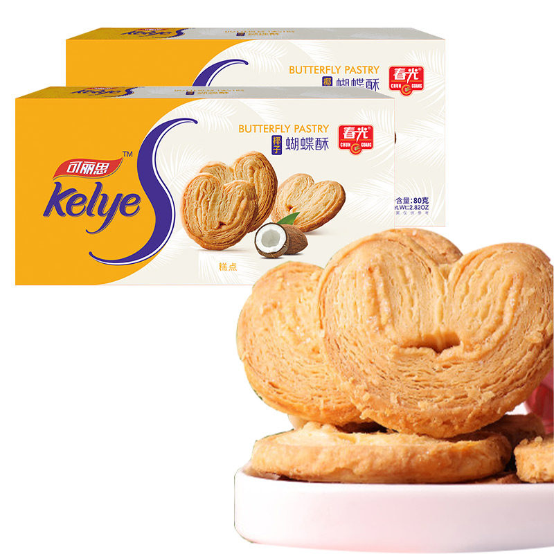 春光椰子蝴蝶酥80g*2盒 海南香酥脆饼干休闲零食点心酥饼下午茶