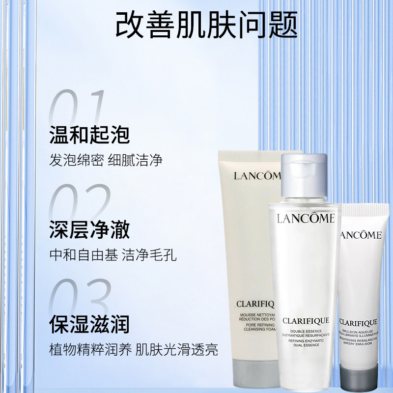 Lancome兰蔻极光水乳洁面三件套装115ml洗面奶乳液精华便携中小样