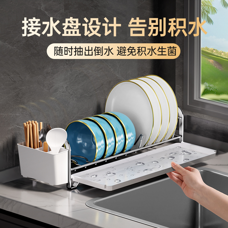 厨房碗碟收纳架台面不锈钢碗架沥水架窗台窄边沥碗盘子碗筷置物架