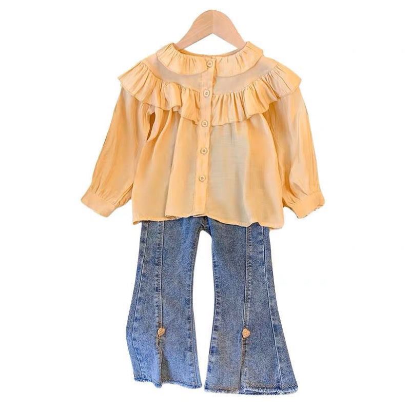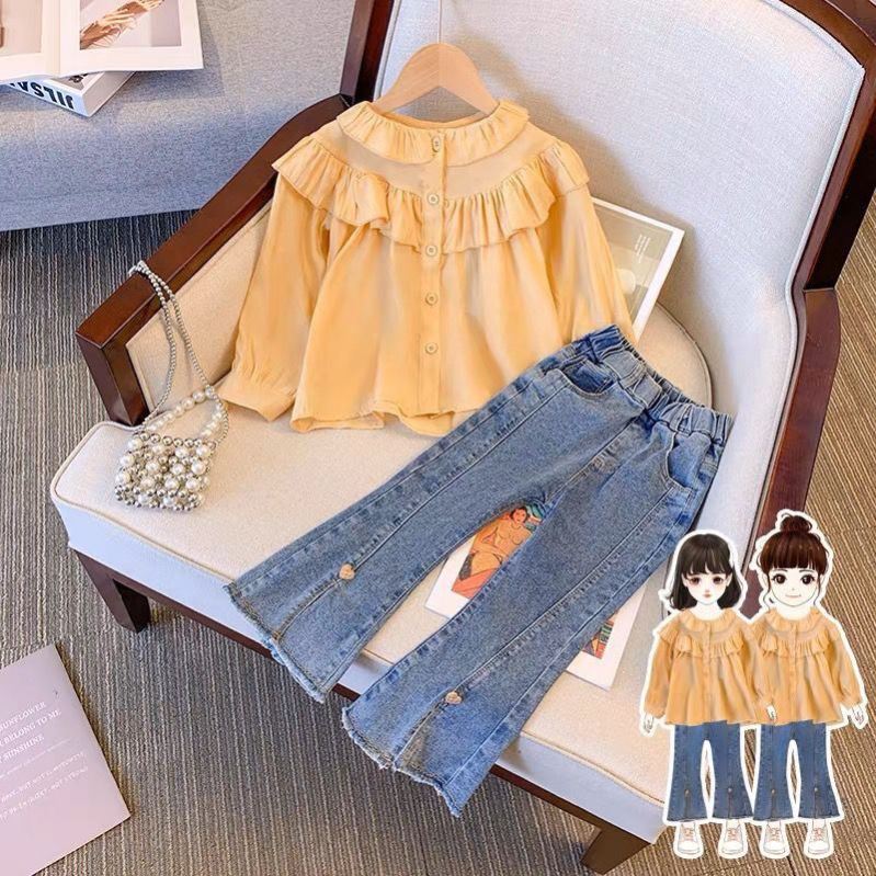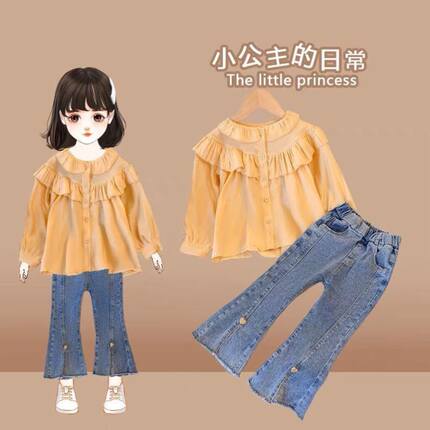 2024女童装时髦套装洋气儿童衬衫牛仔裤子微喇弹力两件套春秋装