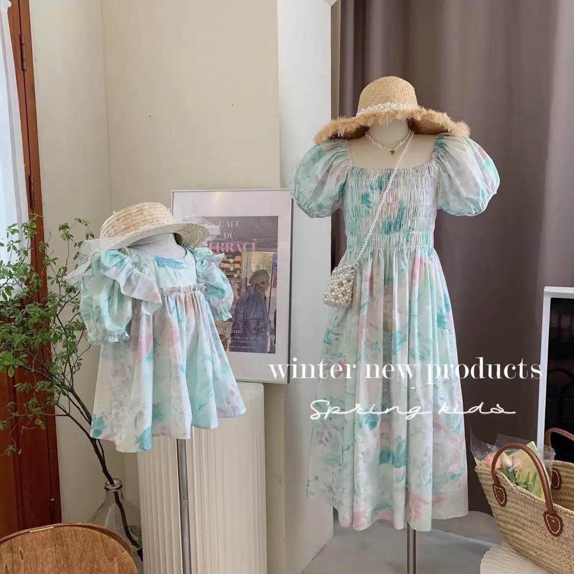 不一样的小个子沙滩海边三亚度假碎花连衣裙高级感母女亲子装夏装