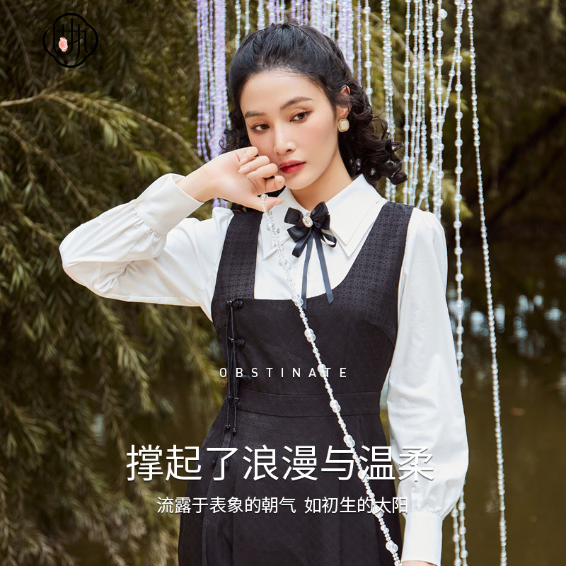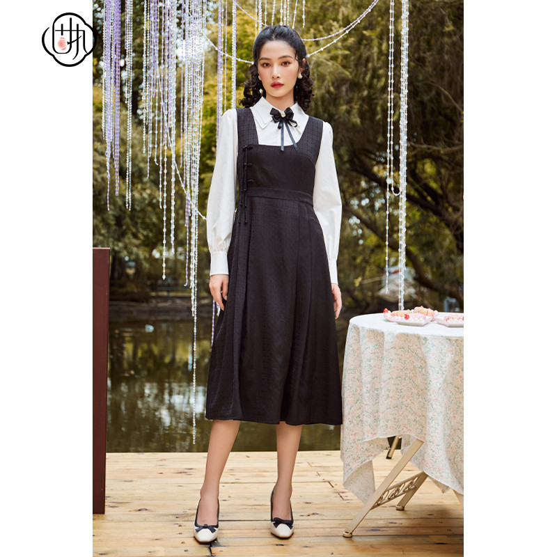 固执秋季新款学院风收腰显瘦无袖中长背带连衣裙00033LQ08314