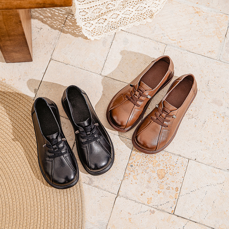 头层牛皮单鞋舒适妈妈鞋平底女鞋