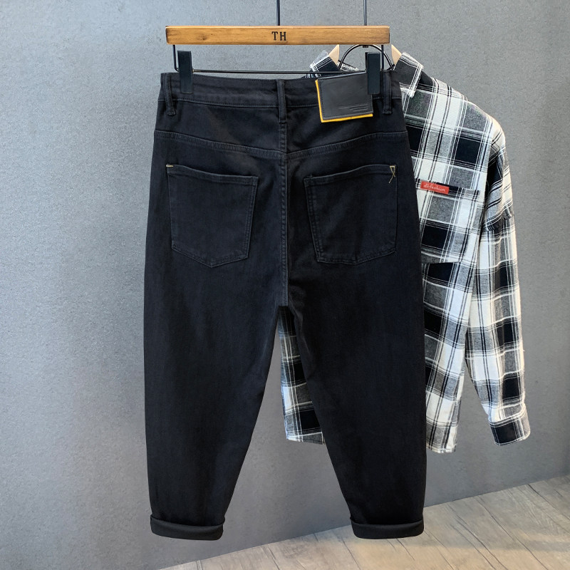 痞帅潮牌秋冬黑色哈伦牛仔裤长裤