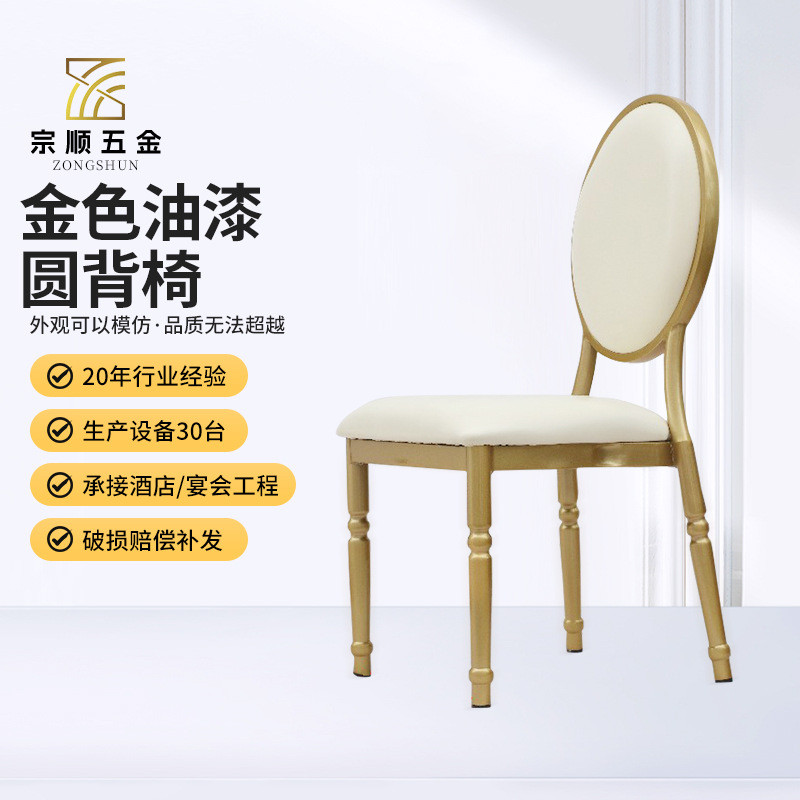 欧式轻奢钛餐椅酒店金宴会餐厅不锈钢圆背椅子婚礼酒席金属靠背椅