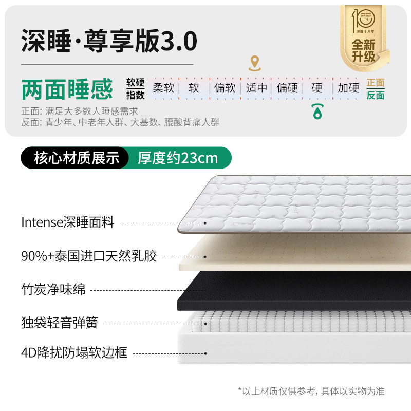 【深睡尊享3.0】雅兰官方天然乳胶床垫名牌家用卧室厚弹簧十大