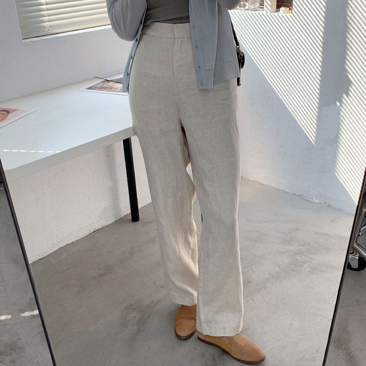 欧美轻奢100%水洗亚麻高腰直筒休闲棉麻薄款长裤外贸原单女大码夏