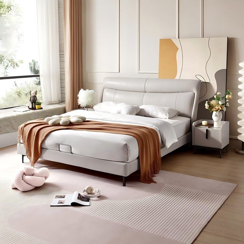 顾家家居现代简约奶油风主卧大床皮床双人床高脚实木床8060