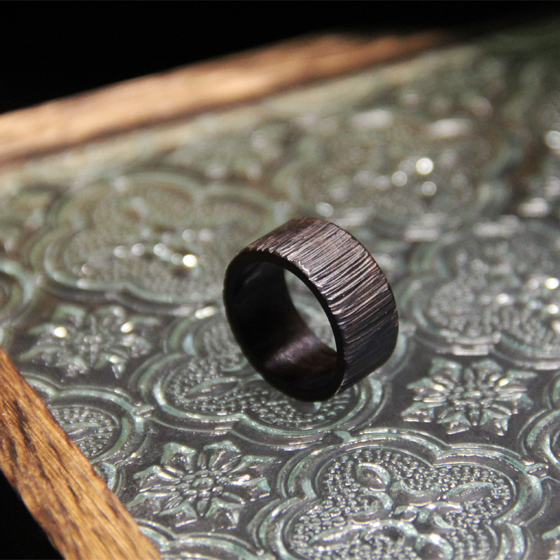 上觉手作 古树 原创纹理黑檀戒指木质指环男女朋友情侣礼物