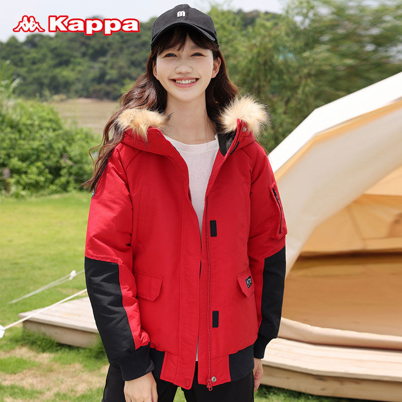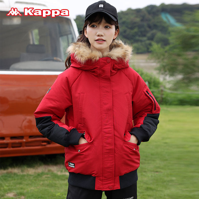 Kappa卡帕毛领加厚羽绒服女连帽拼接保暖外套-K0A82YY57D