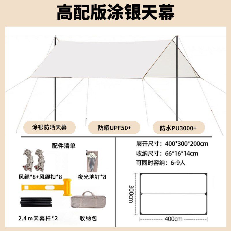 露营户外黑d胶天幕帐篷防晒防紫外线野营用品涂银幕布便携遮阳天