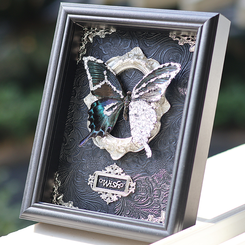 真蝴蝶标本相框摆件金箔装饰画情侣高级感七夕教师节生日礼物成品