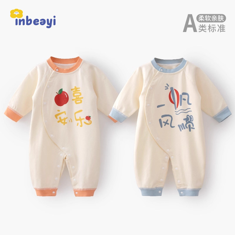 婴蓓依纯棉春秋款满月婴儿连体衣