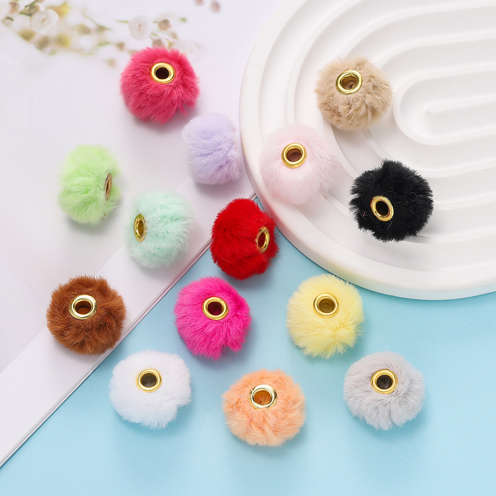 秋冬小香风彩色金属毛球通孔大孔串珠手链手机链隔珠DIY饰品配件