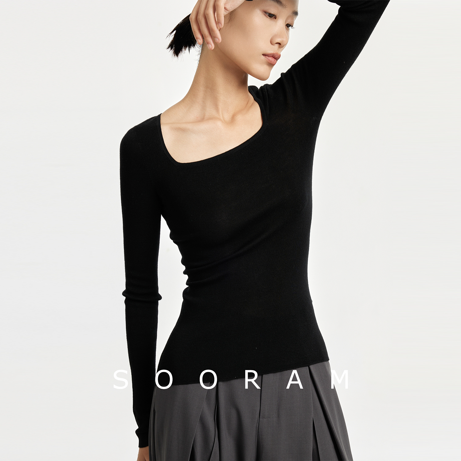 SOORAM德国高端扬子纱无缝打底衫女秋冬方领美丽诺细羊毛针织衫女