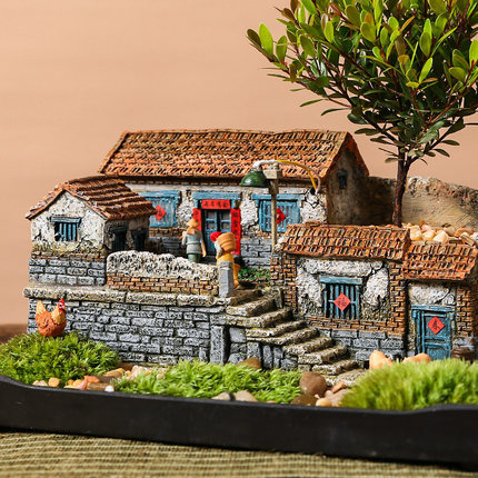 怀旧复古摆件客厅茶几庭院装饰工艺品桌面微景观摆设老房子模型