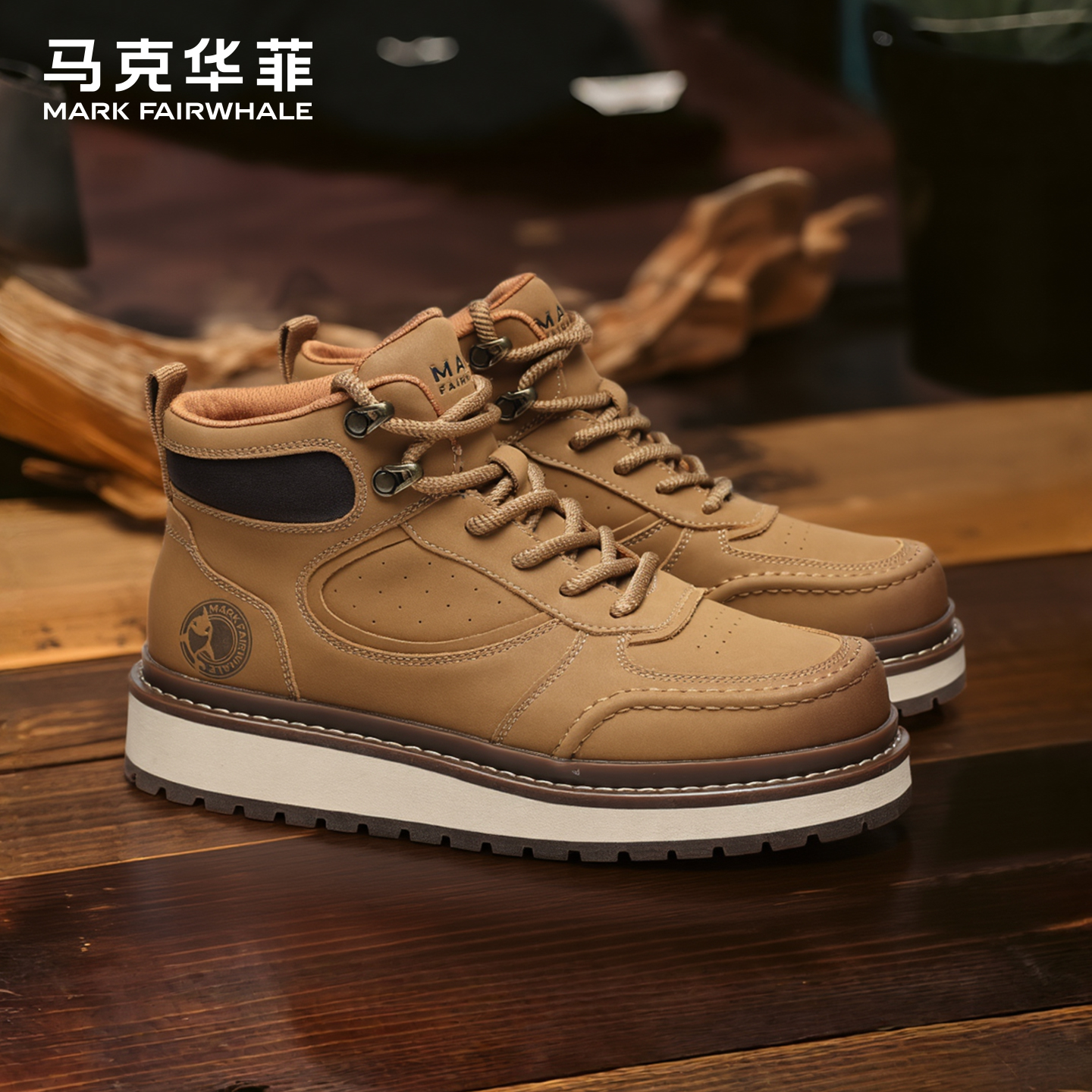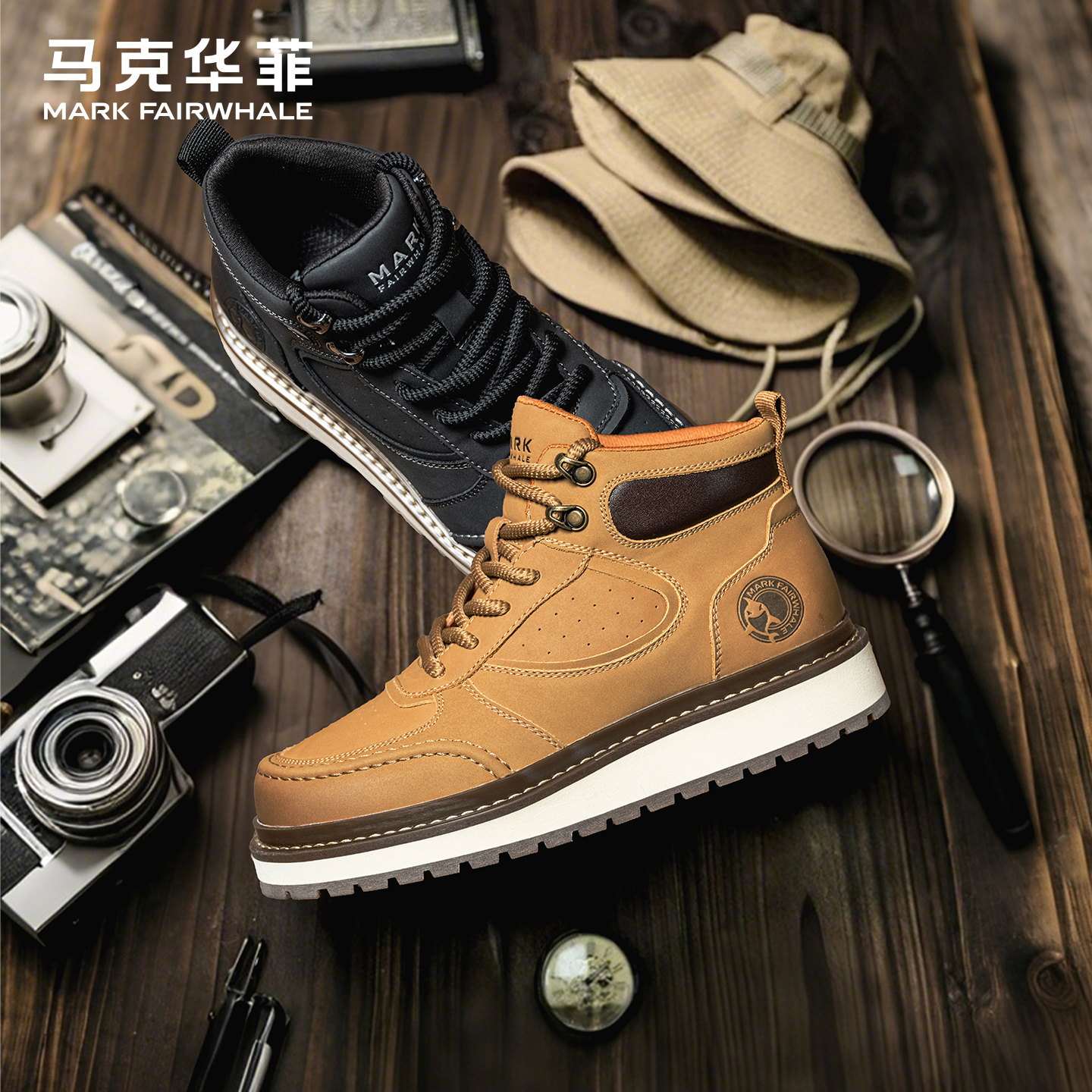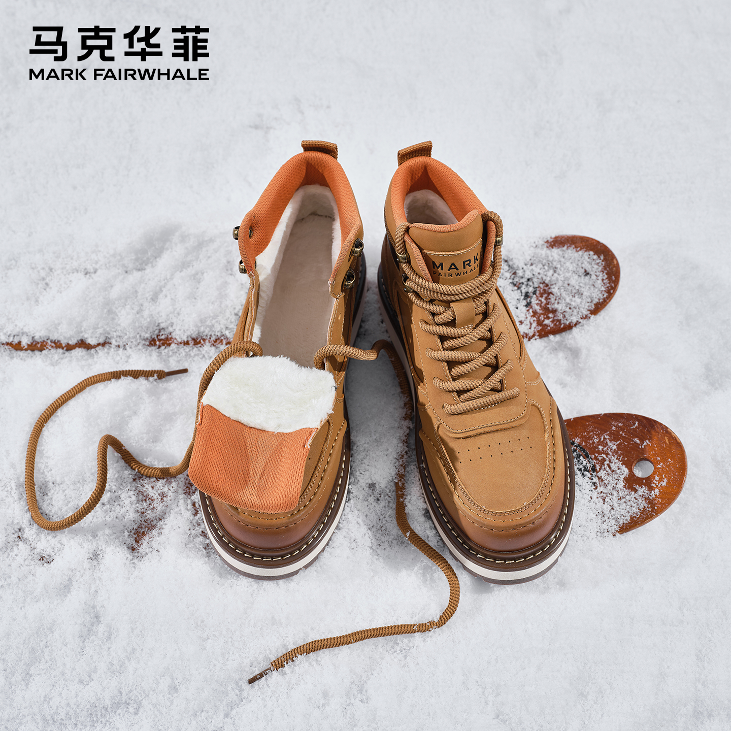 马克华菲冬季加绒马丁靴男款2025新款男士复古工装靴保暖大黄靴男