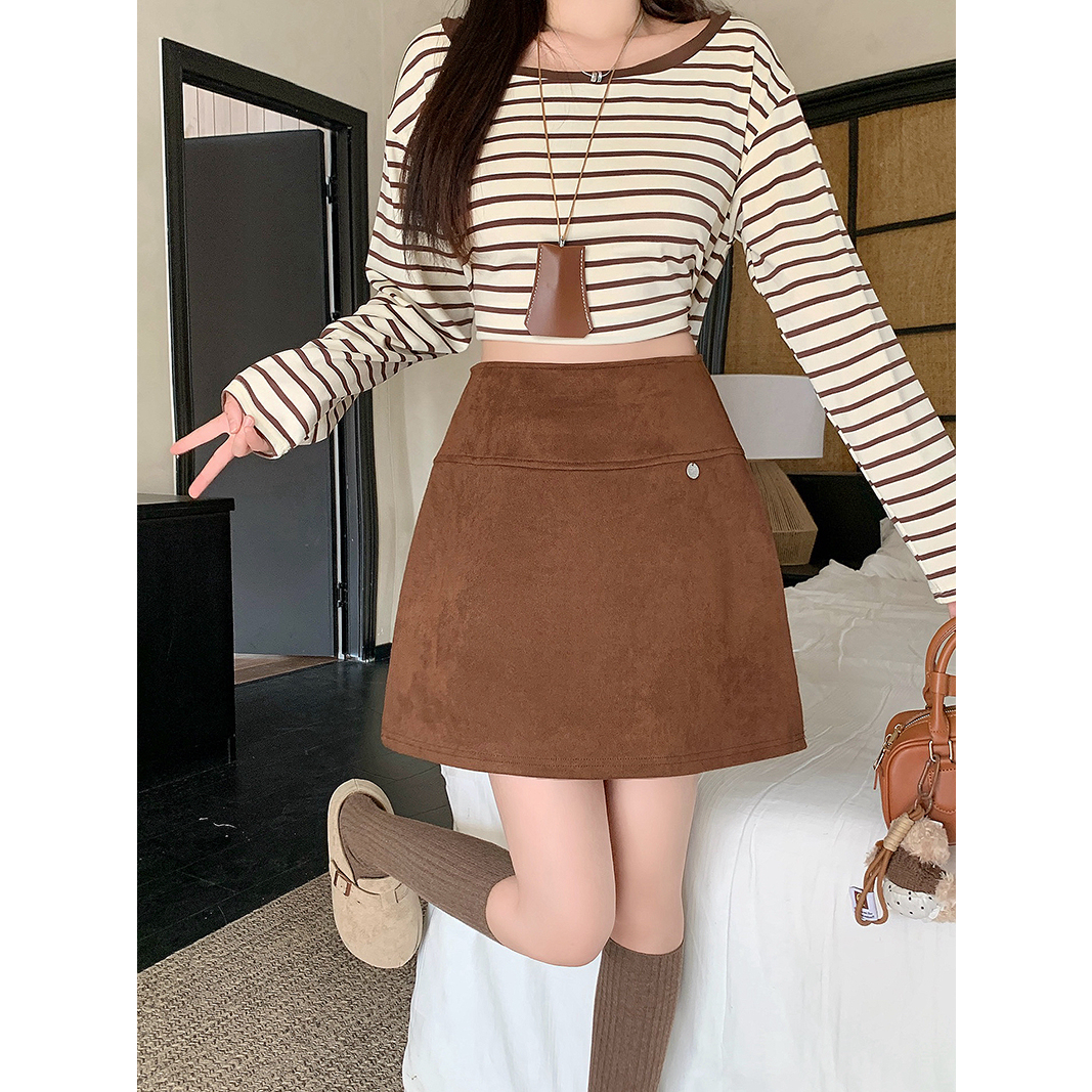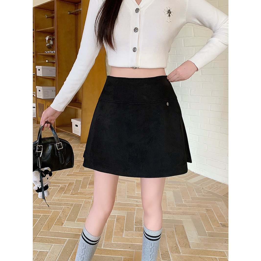 大码复古鹿皮绒半身裙女2025秋冬新款胖mm高腰气质显瘦a字短裙裤
