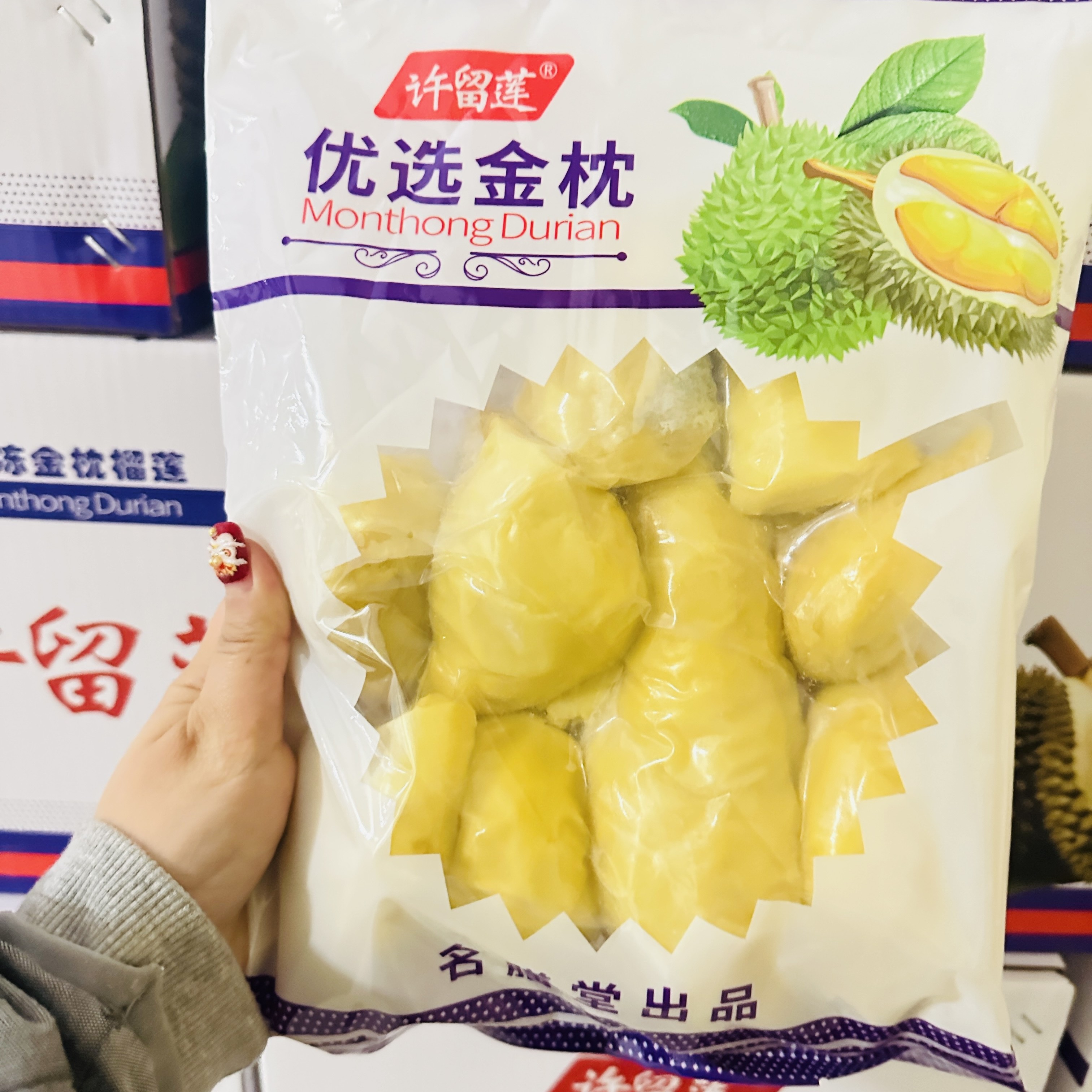 【大连现货辽宁包邮】名膳堂许榴莲金枕榴莲肉冻2斤袋装有核