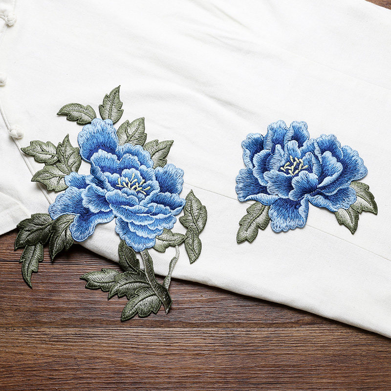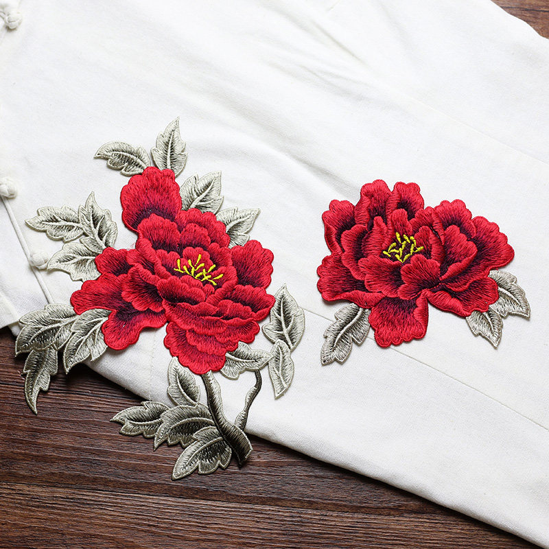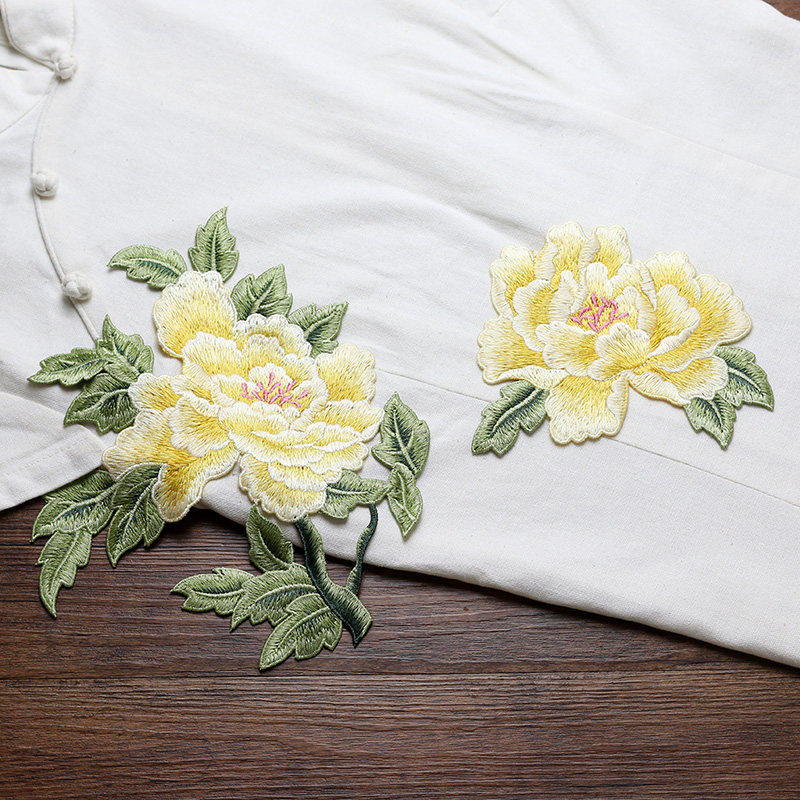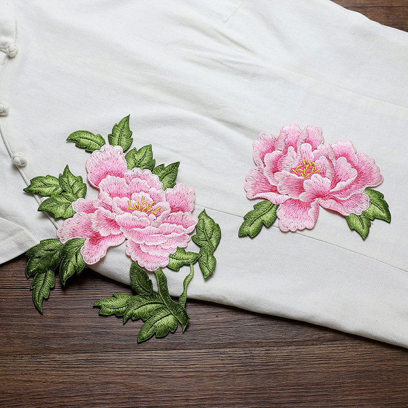 富贵牡丹花组合刺绣布贴 旗袍贴花装饰手工DIY修补贴辅料补丁无胶