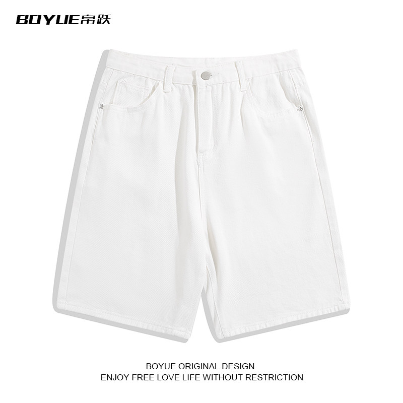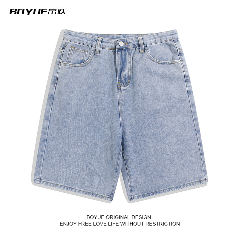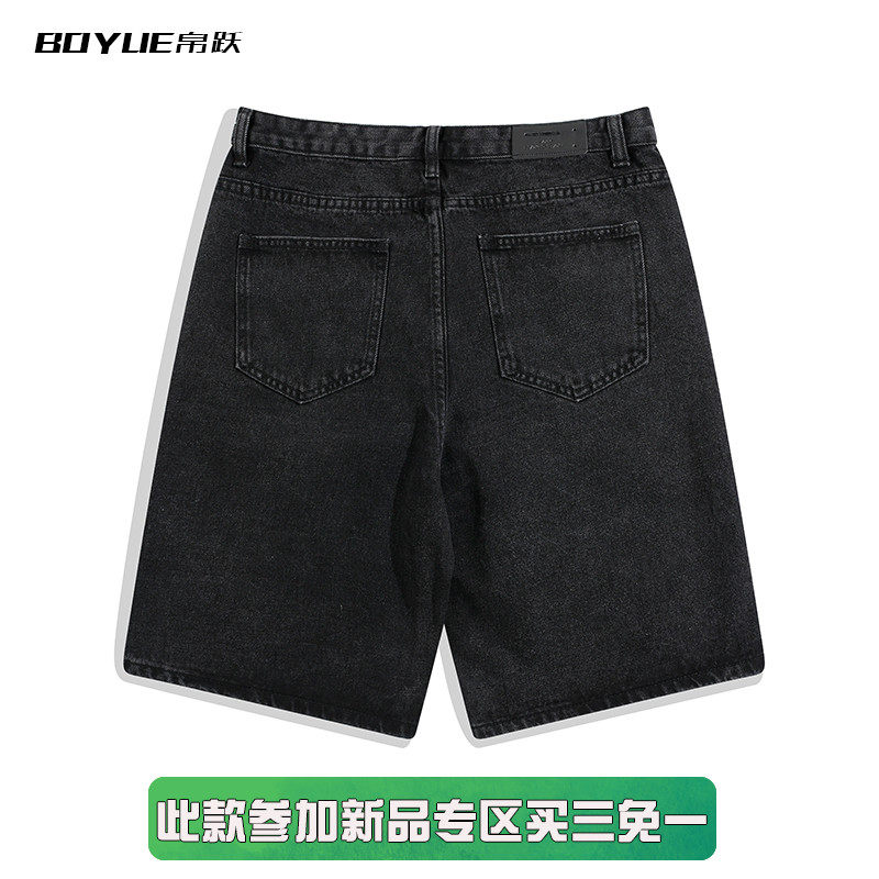 BOYUE帛跃夏季休闲纯色牛仔短裤男高街五分直筒裤潮牌ins痞帅宽松