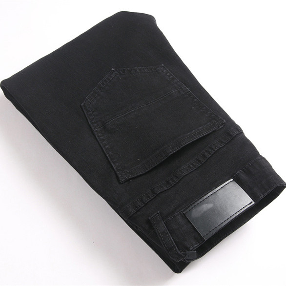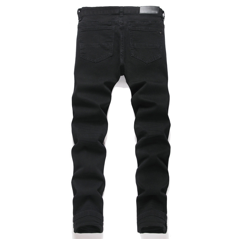 轻奢高街风破洞烫钻补丁牛仔裤男弹力修身小脚乞丐街头潮流长裤子