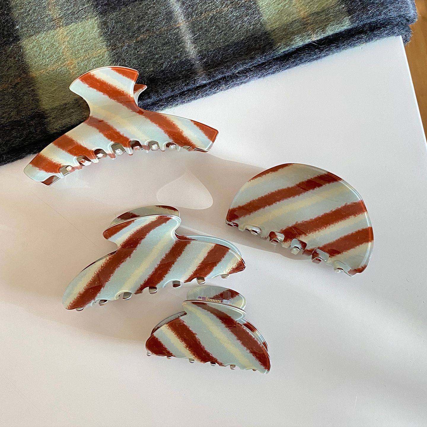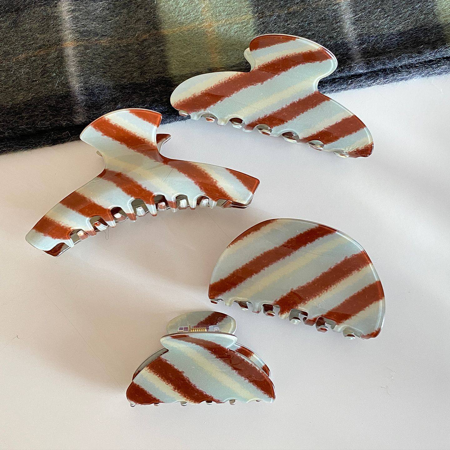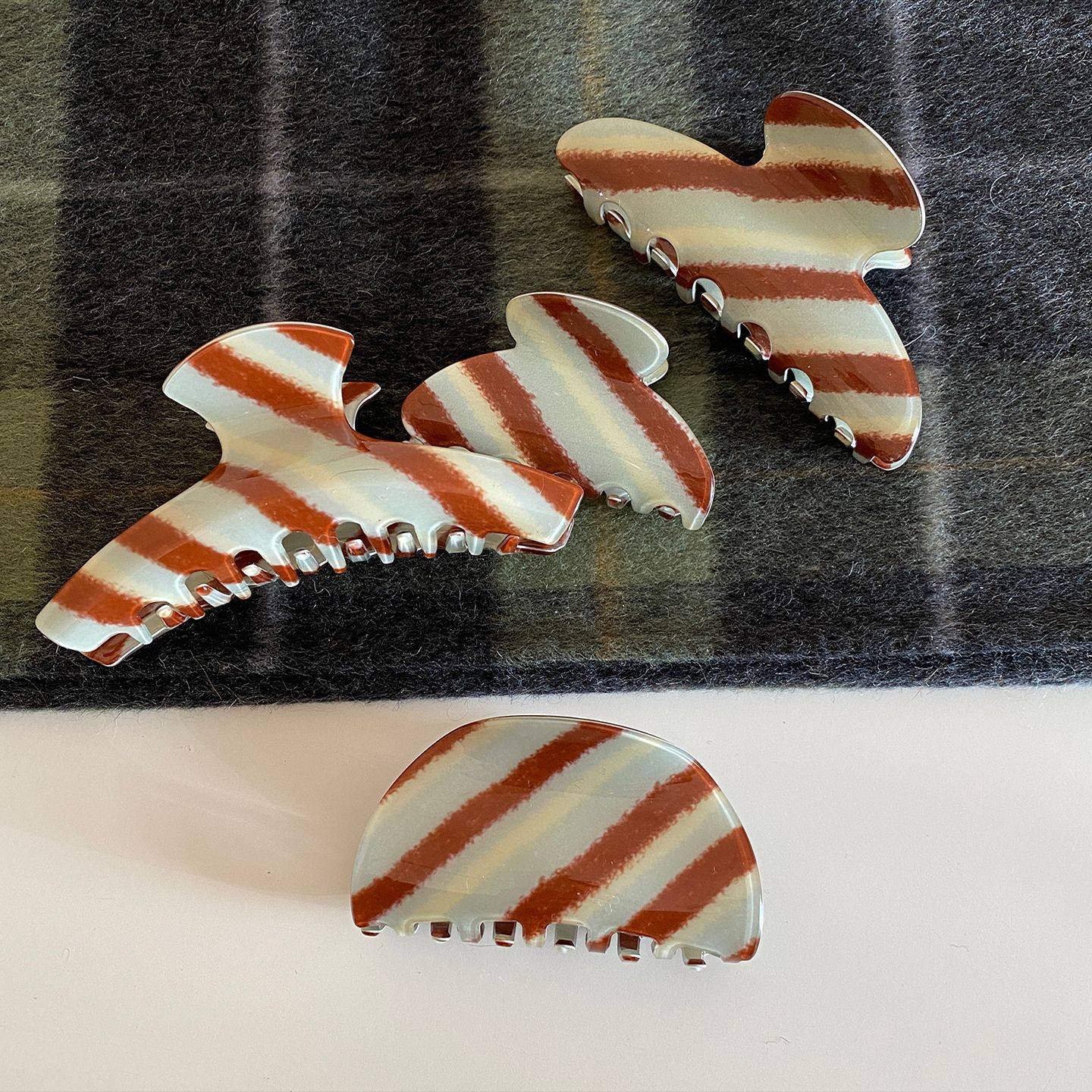 奶巧慕思~韩系复古时尚撞色条纹抓夹小众设计半扎发夹鲨鱼夹新款