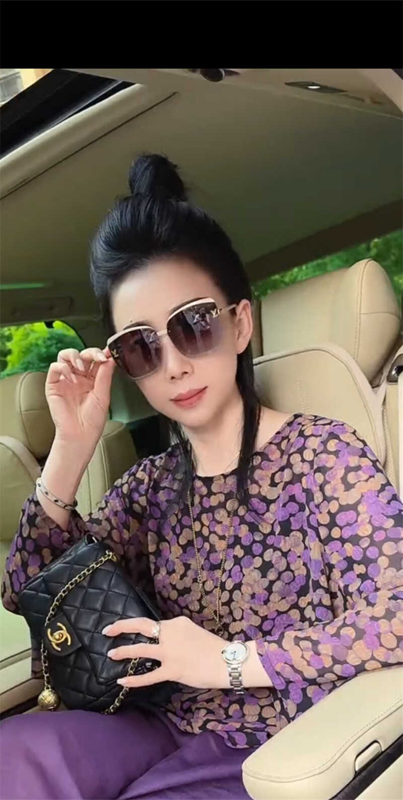 气质时尚阔腿裤套装紫色棉麻上衣
