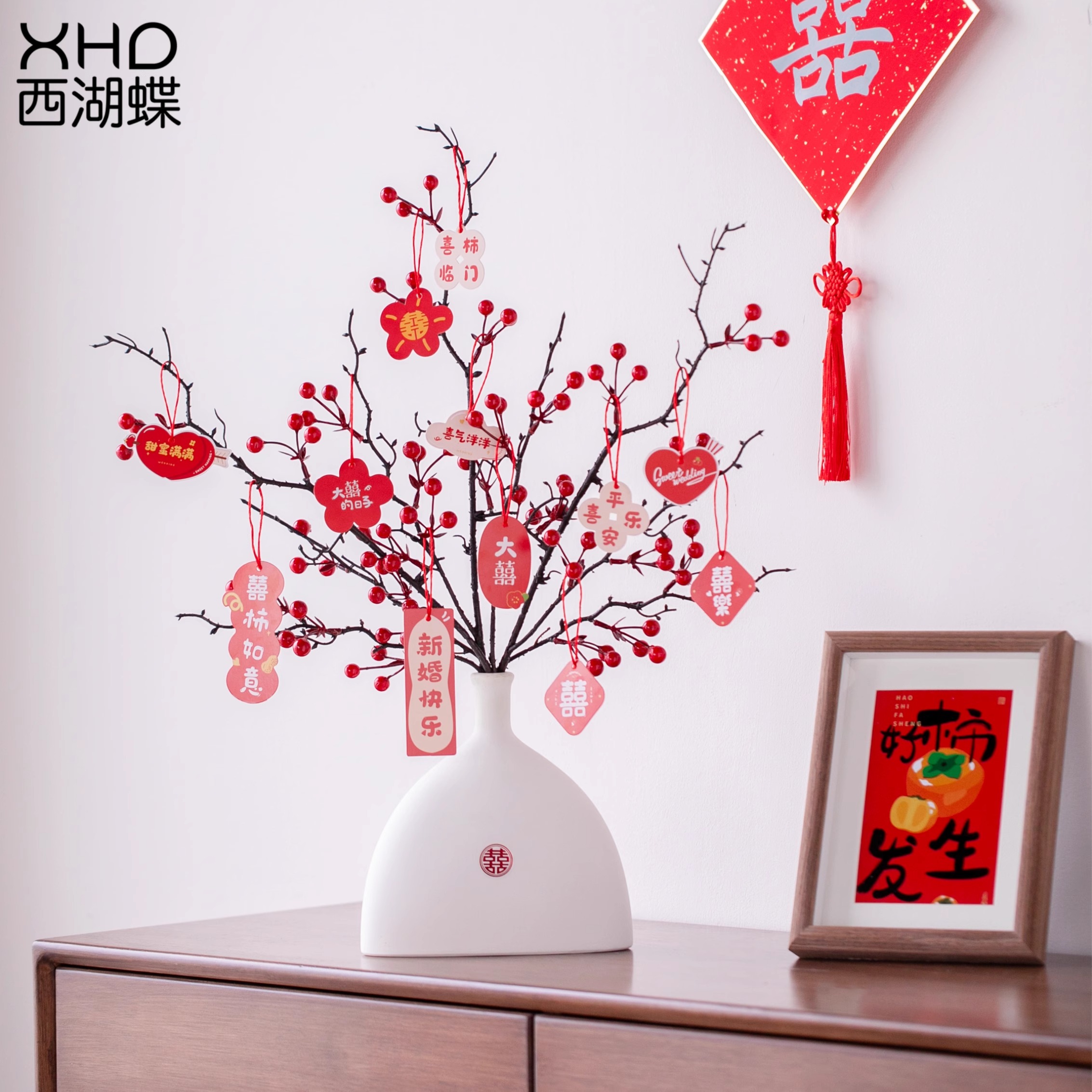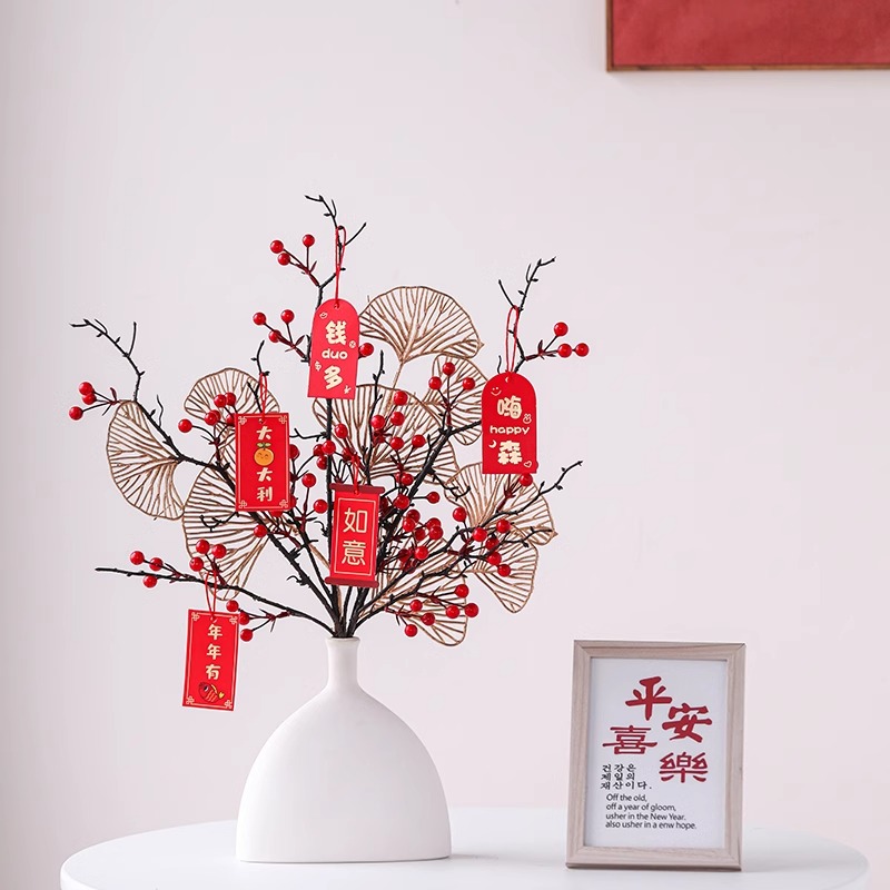 冬青红果子发财果仿真花假花摆设乔迁之喜插花家居新年装饰花摆件