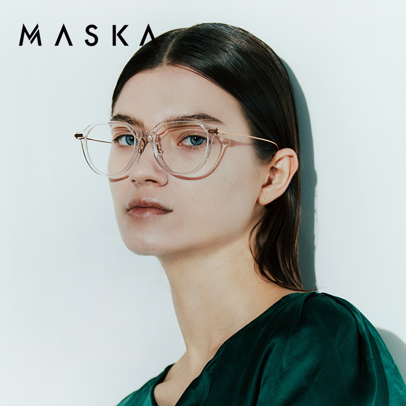 韩国MASKA眼镜框男女黑色透明板材全框纯钛超轻玫瑰金眼镜架ABURT