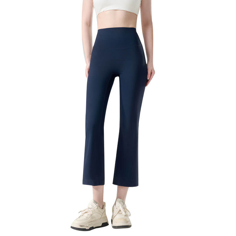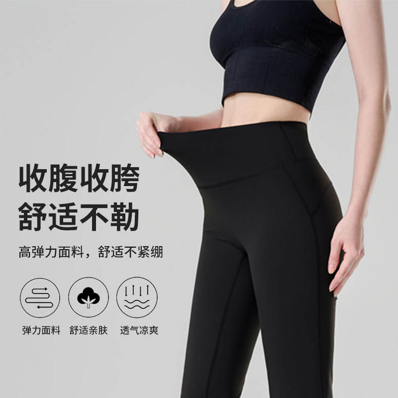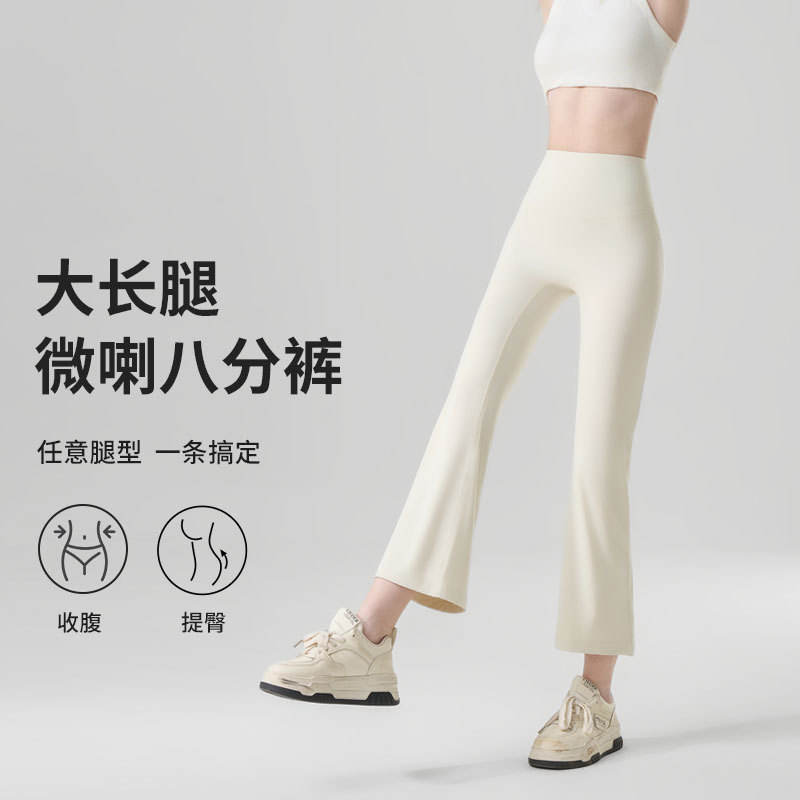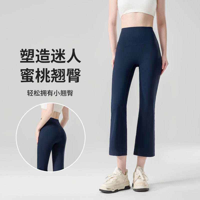 运动空气层八分直筒烟管裤女夏高腰显瘦提臀裸感运动健身瑜伽微喇