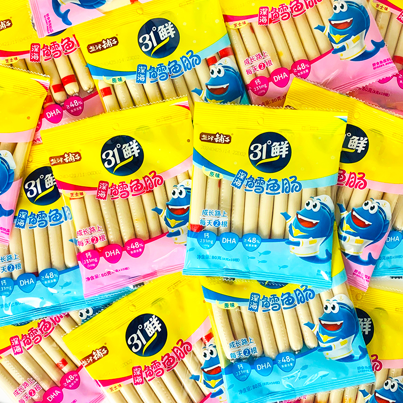 盐津铺子鳕鱼肠31度鲜深海雪鱼肠儿童营养健康小零食即食肉火腿肠